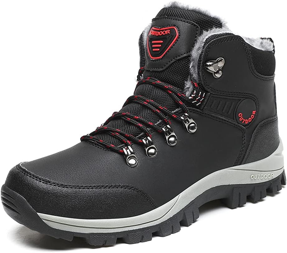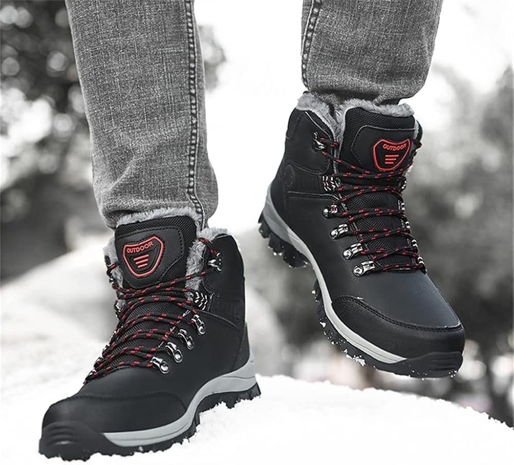 Men's Lightweight Snow Boots Men Winter Warm Lining Anti-Slip Mid Top Shoes Leather Sneakers for Hiking Working Driving Outdoor Shoes Trekking Hiker Black, 9.65” Heel to Toe