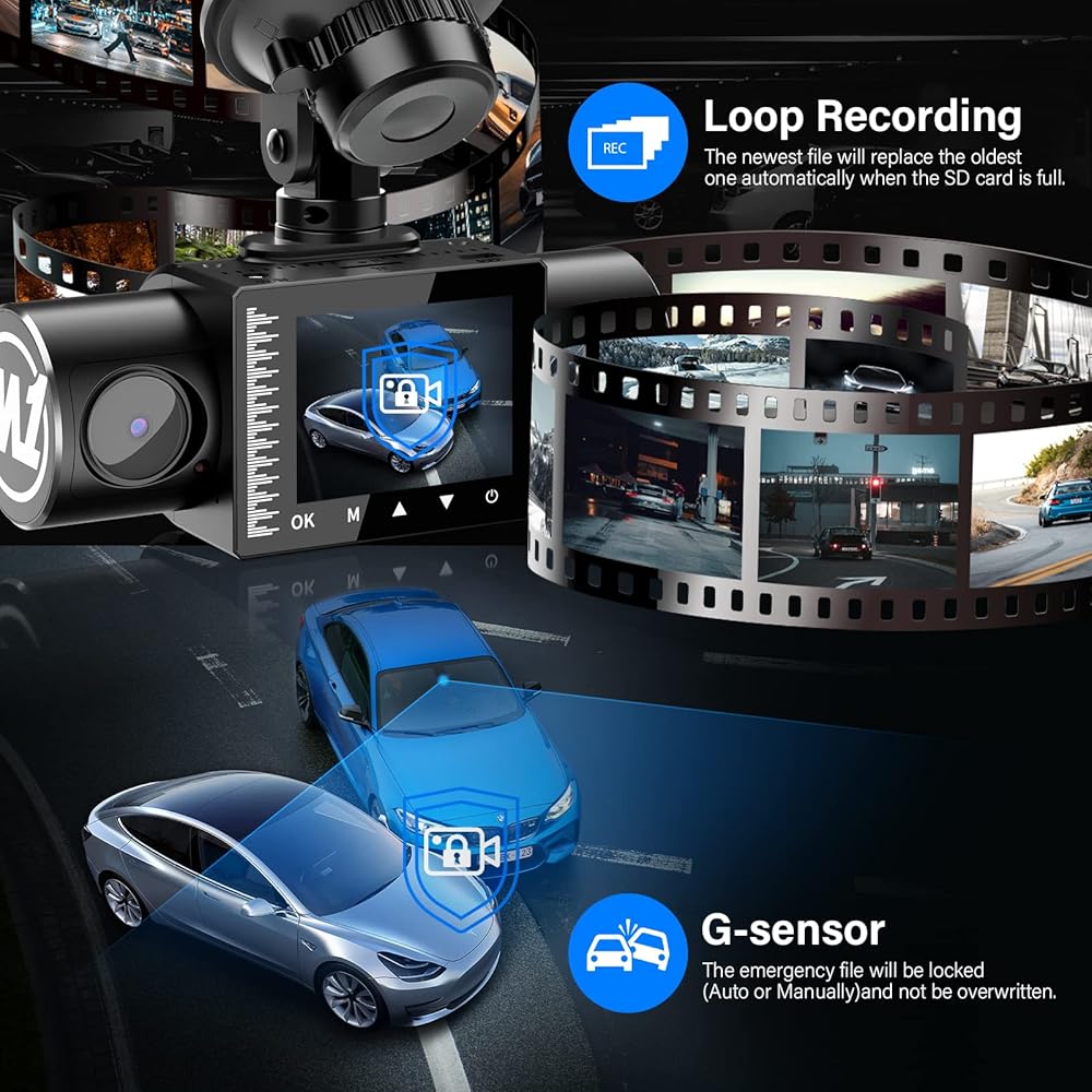【Loop Recording and G-sensor】Triggered by a built-in G-sensor, the dash cam can lock the video automatically when there is an emergency situation(Like collision or crash). And also you can manually lock the video when you need it as an evidence. The dash cam will simultaneously record, the newest video will replace the oldest one (Locked video will not be replaced)