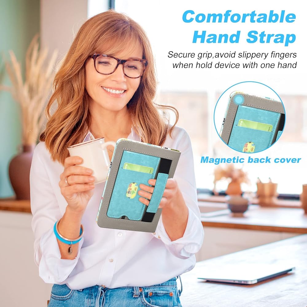 SPECIAL FEATURES: The all-new Kindle 2022 have a built-in magnetic strip, so your kindle ereader devices 2022 will wake up or sleep automatically when you open and close the flap. The magnetic clasp of the Kindle 2022 case is strong enough to keep it securely closed. Our Kindle case 2022 features a built-in card pocket on the inside. Kindle 2022 cover is designed with a built-in hand strap and stand on the back that allows you to use your Kindle 11th generation with one hand, or even hands-free!