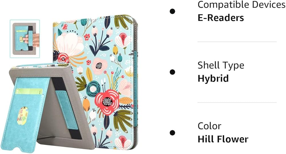 DMLuna Stand Case for All-New Kindle 6" (11th Generation 2024/2022 Release), Premium PU Leather Cover with Auto Sleep Wake Function, Hand Strap and Card Slot, Hill Flower