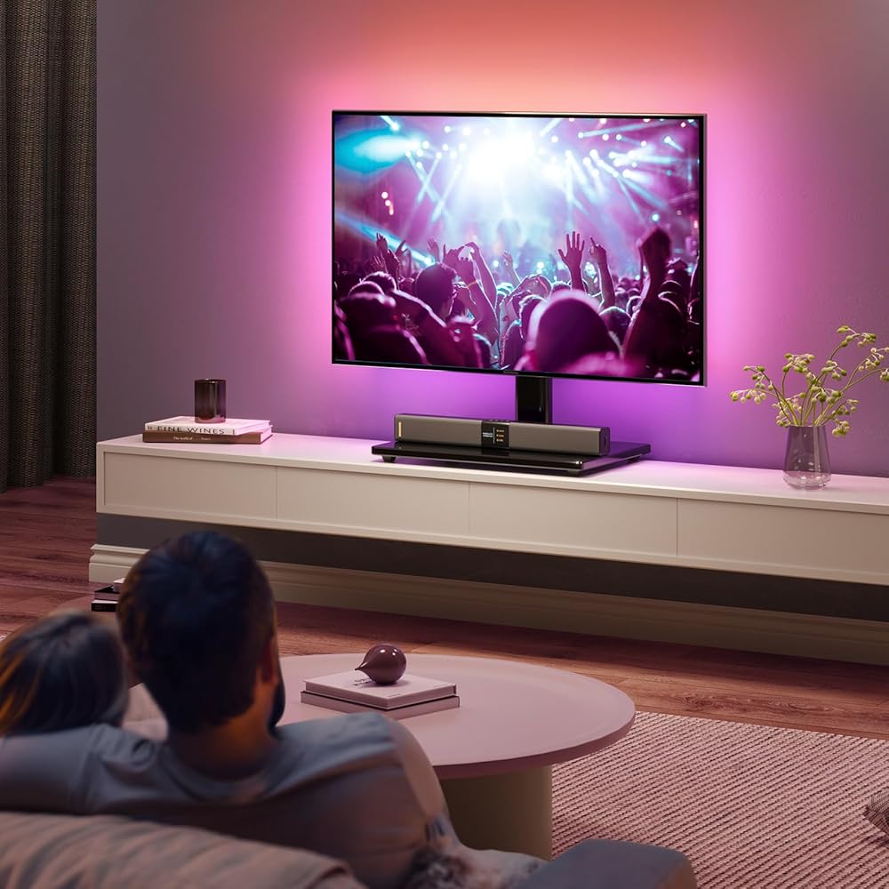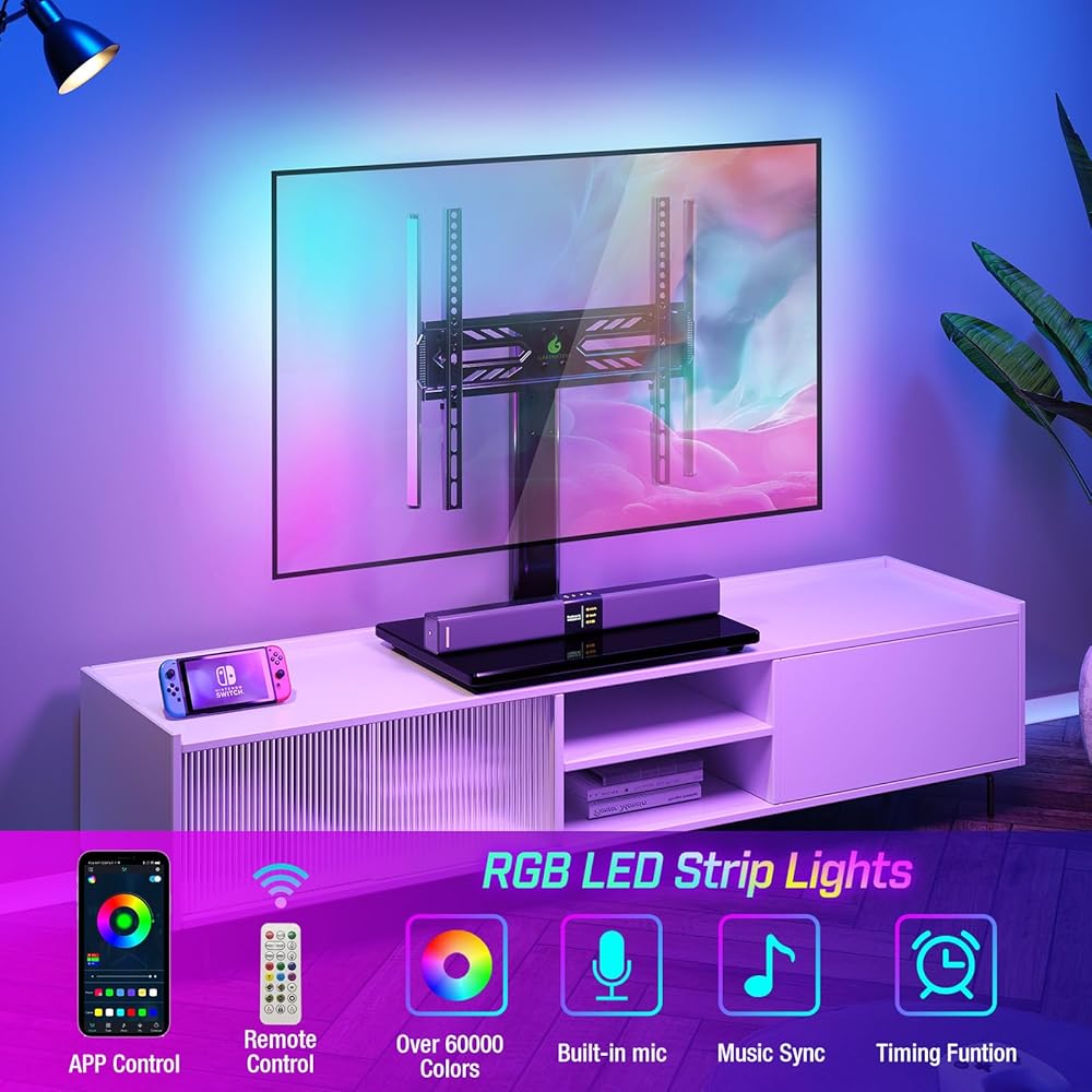 Greenstell TV Stand with LED Lights, Universal Table Top TV Stand for 27-55 inch TVs, Height Adjustable TV Base Stand, Eye Protection, Swivel, Holds up to 88 Lbs, Max VESA 350x350mm