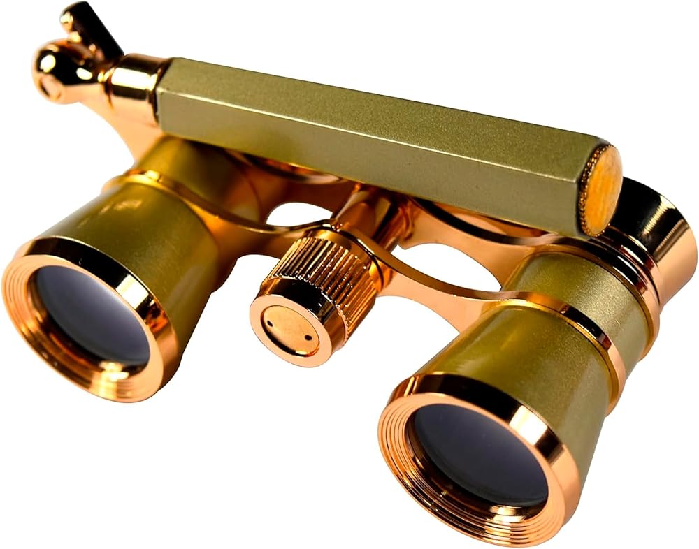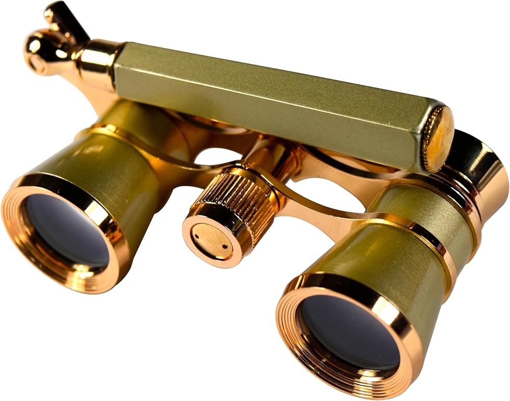 HQRP 3 x 25 Opera Glasses Theater Binoculars, Crystal Clear Optic (CCO), Yellow/Golden Color with Gold Trim, Built-in Extendable Handle, for Adults Kids Women in Musical Concert, Gift Box