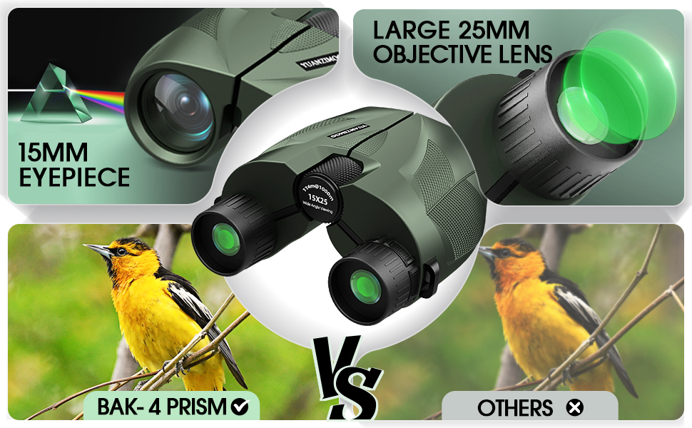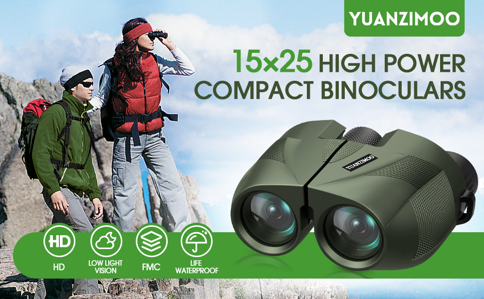 15x MAGNIFICATION HIGH-POWERED BINOCULARS: The 15 magnification binoculars for adults with 25mm objective lens provides wide field of view, 383ft/1000yds, high definition without blurred image. You can easily get a more comfortable and large vision