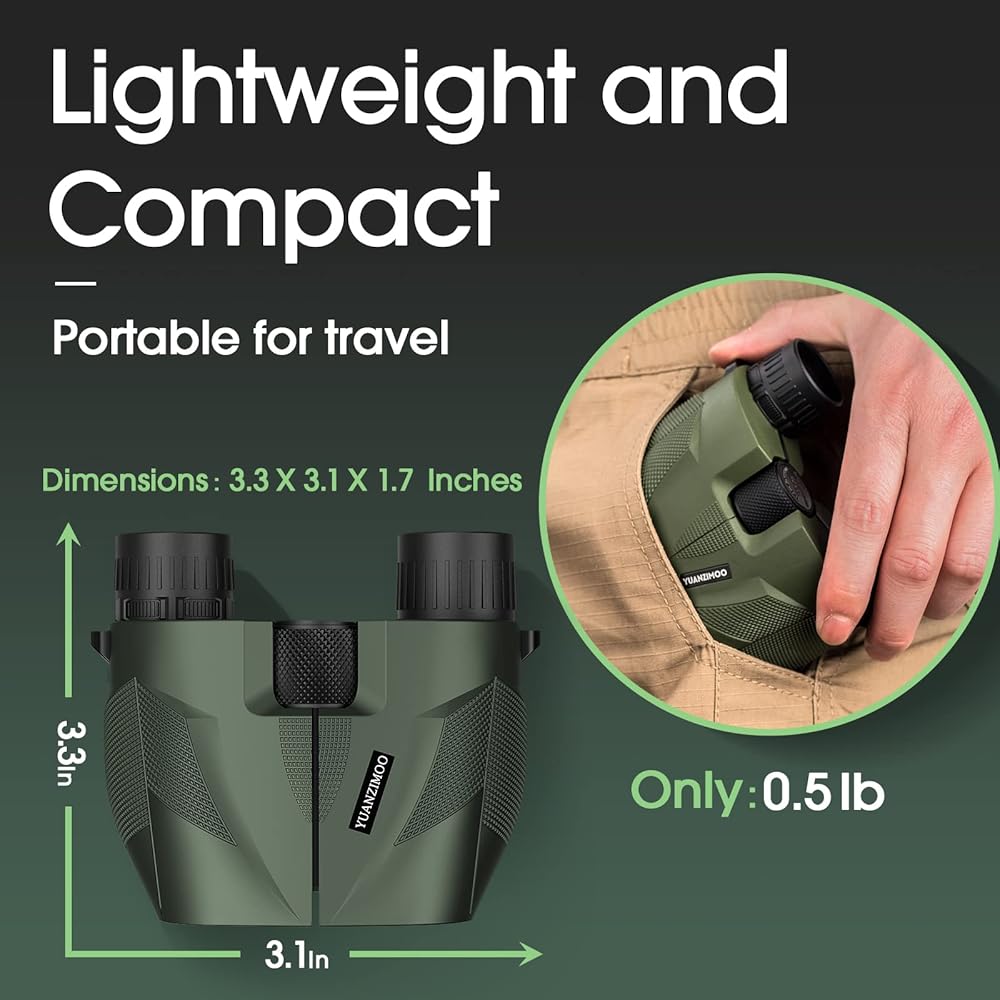 0.5LB LIGHTWEIGHT COMPACT BINOCULARS: The foldable design and only 0.5lb compact binoculars can fold up for easier placement in a pocket or backpack, convenient and easy to carry