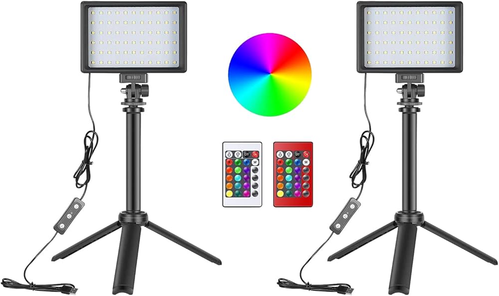NEWKS RGB Photography Video Lighting,Studio Lights with Adjustable Tripod Stand - 16 Color Lighting for Video Recording/YouTube/TikTok/Live Streaming/Make up/Vlogging