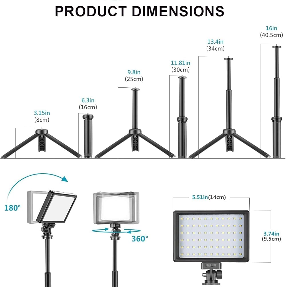 【Designed 10 Brightness Levels】These studio lights are built with 60 LEDs of high performance. The brightness can be set in a range of 10% to 100%, conveniently controlled by wires. The control is made with background lights and as such you can operate the lights even in a dark environment.