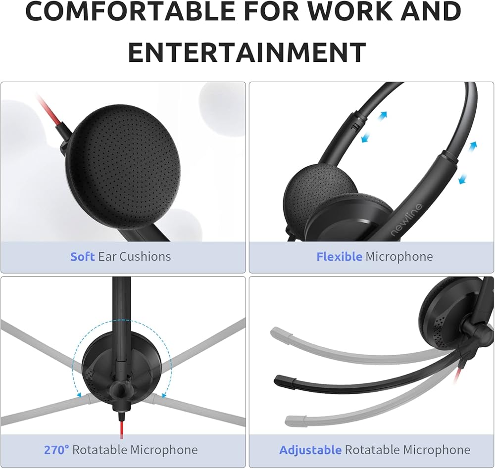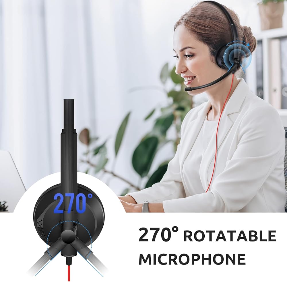 270° Rotatable Work Headset - Unidirectional boom 270° microphones that only pick up your voice and block out unwanted background noises. Also, you can switch the microphone to either the left or right side of your head as you prefer. Feel free to pick up the wired headset, plug and play, no need for any driver.
