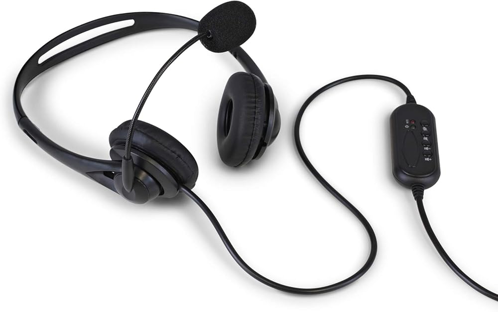 IN-LINE AUDIO CONTROLS: Easy to access volume and mute controls in the cord, you can quickly adjust the headset volume up/down, mute/un-mute the microphone or speaker.