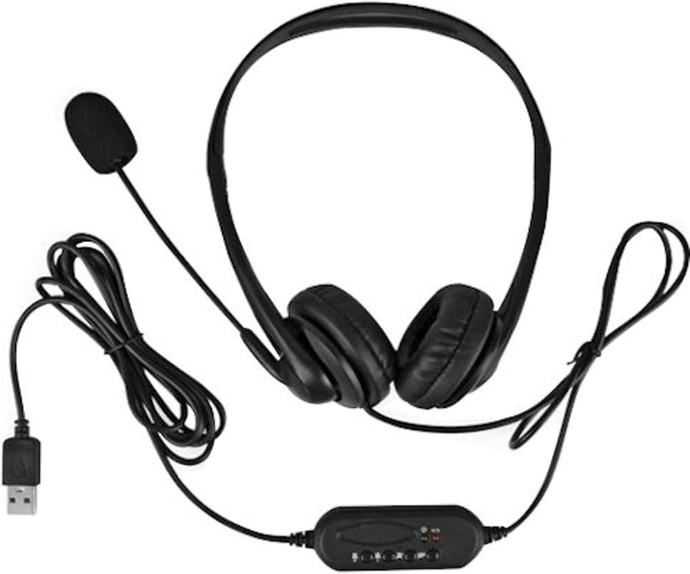 Aluratek Wired USB Stereo Headset with Noise Reducing Boom Mic and in-Line Controls, for Distance Learning, Zoom, MS Teams, Video Conferencing, Skype, Gaming, Music Play, Webinars (AWHU01FJ), Black