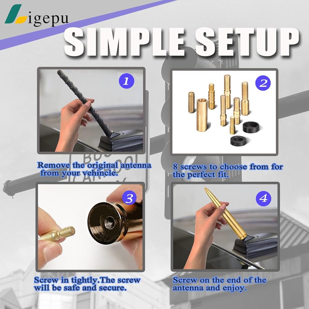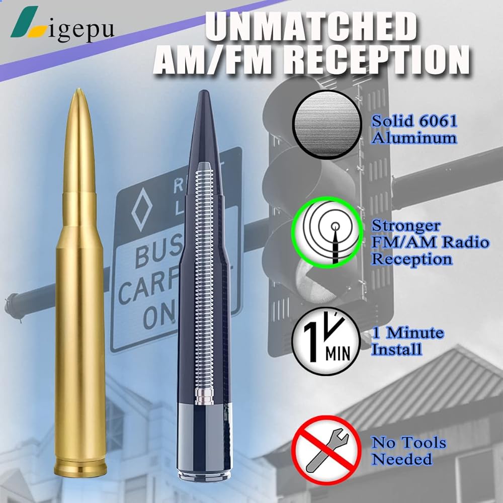 【UNMATCHED AM/FM RECEPTION】No need to worry about static or bad reception. Our Gold Bullet Antenna is made with Durable 6061 Solid Aluminum and has an Internal Copper Coil, which is 500% more conductive than steel, and is great for your reception.our bullet antenna is much closer to the OEM antenna in reception.