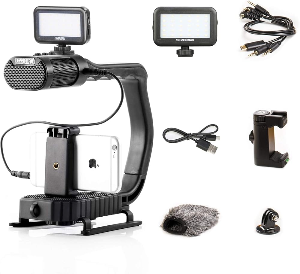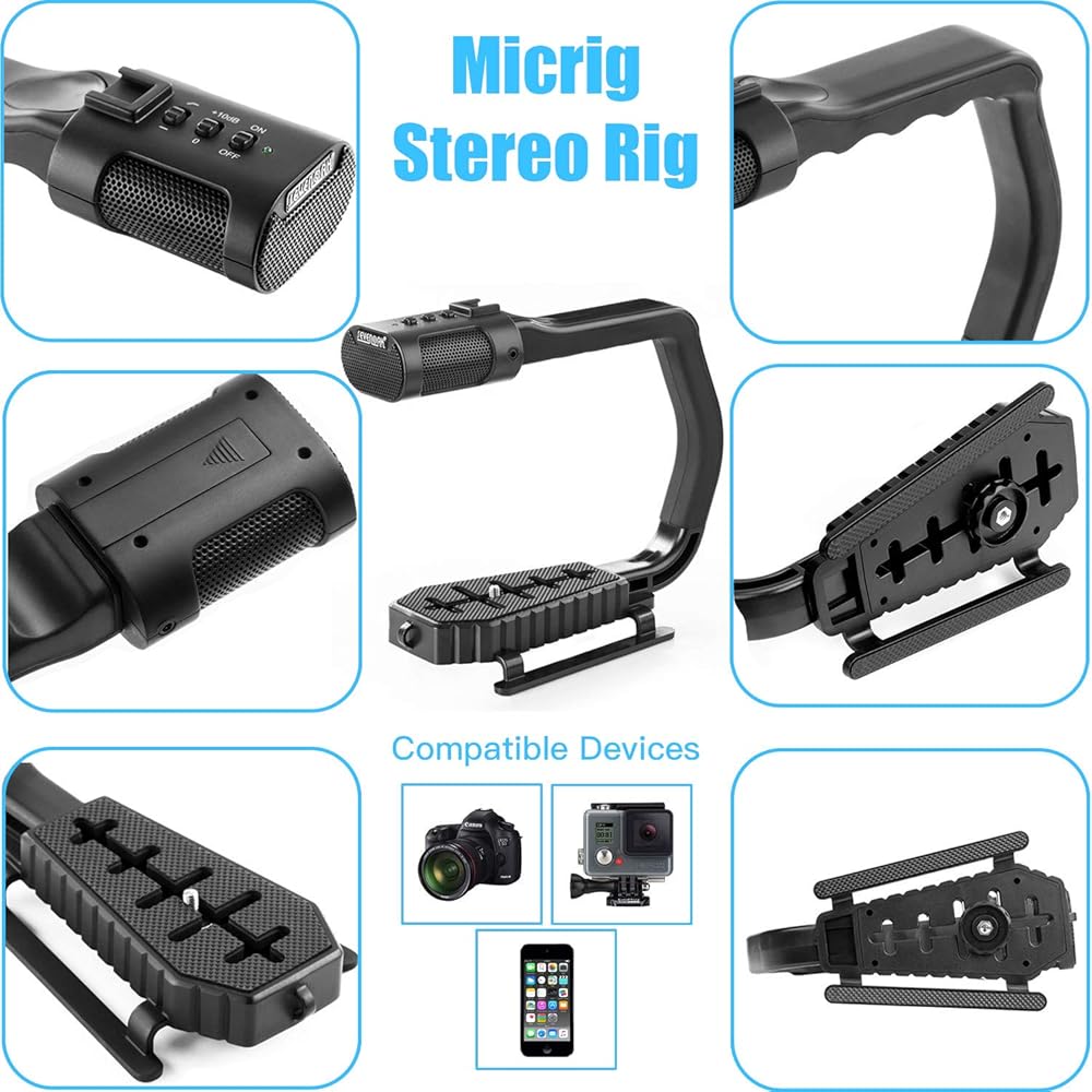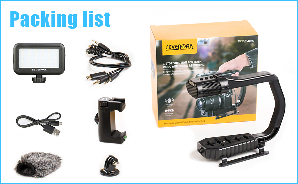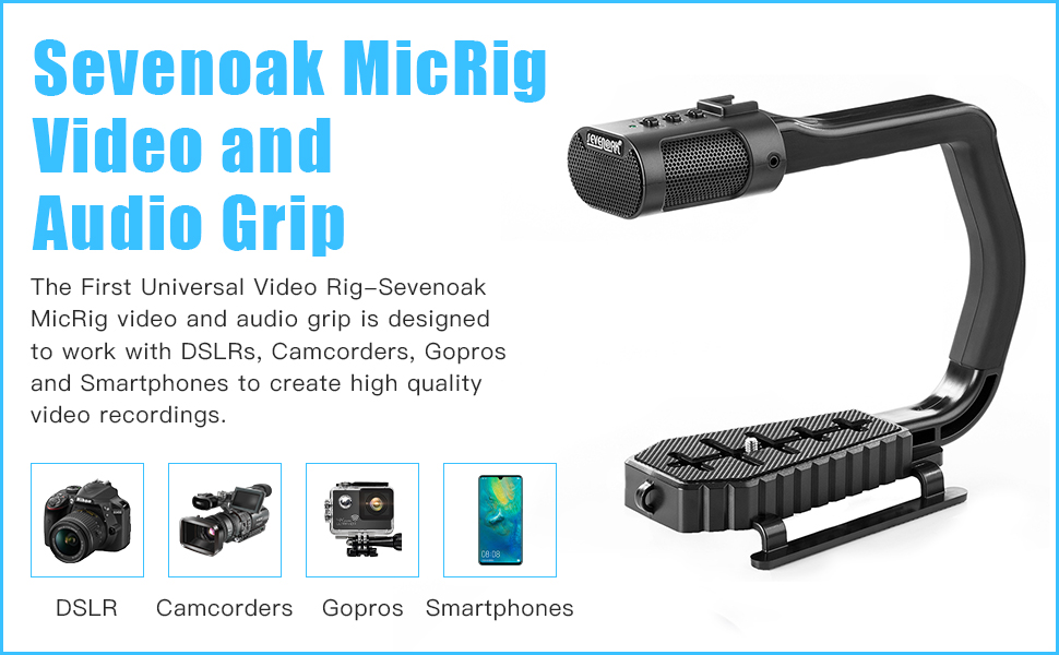 ❤ قبضة محمولة مع ميكروفون استريو مدمج عالي الجودة مع ضوء فيديو وجهاز تحكم عن بعد في السوق - مجموعة أدوات قبضة الفيديو والصوت Sevenoak MicRig مع تخفيف صوت قابل للتعديل