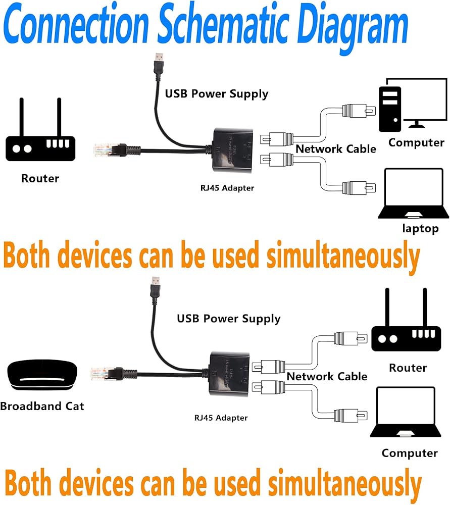 SinLoon Ethernet splitter Specially idear for Solve theNetwork wifi signal weak and connection problem caused by insufficient wiring: such as the basement, the attic, the remote house, 2 or more devices online.Easily convert your RJ45 connection in to two RJ45 sockets with this network splitter.