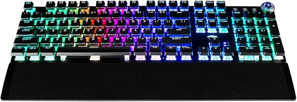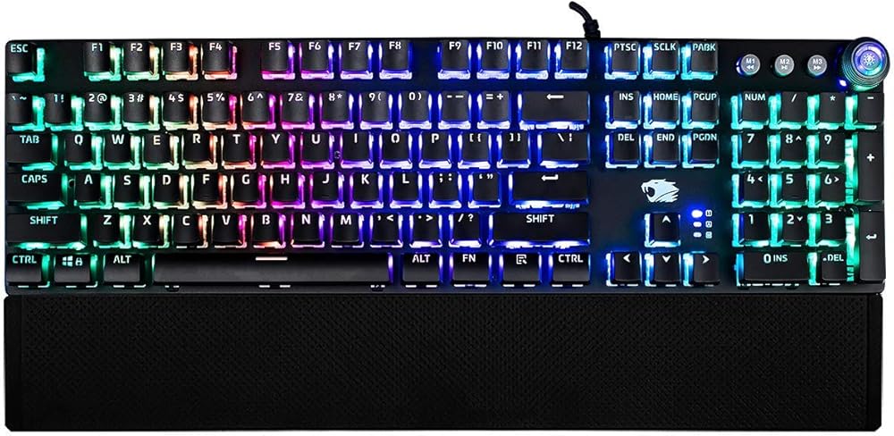 iBUYPOWER MEK 3 LT Mechanical Gaming Keyboard with Clicky Blue Switches Aluminum Top Surface Full Sized Keyboard 104 Keys Low-Profile Double Injection Keycaps Braided USB.