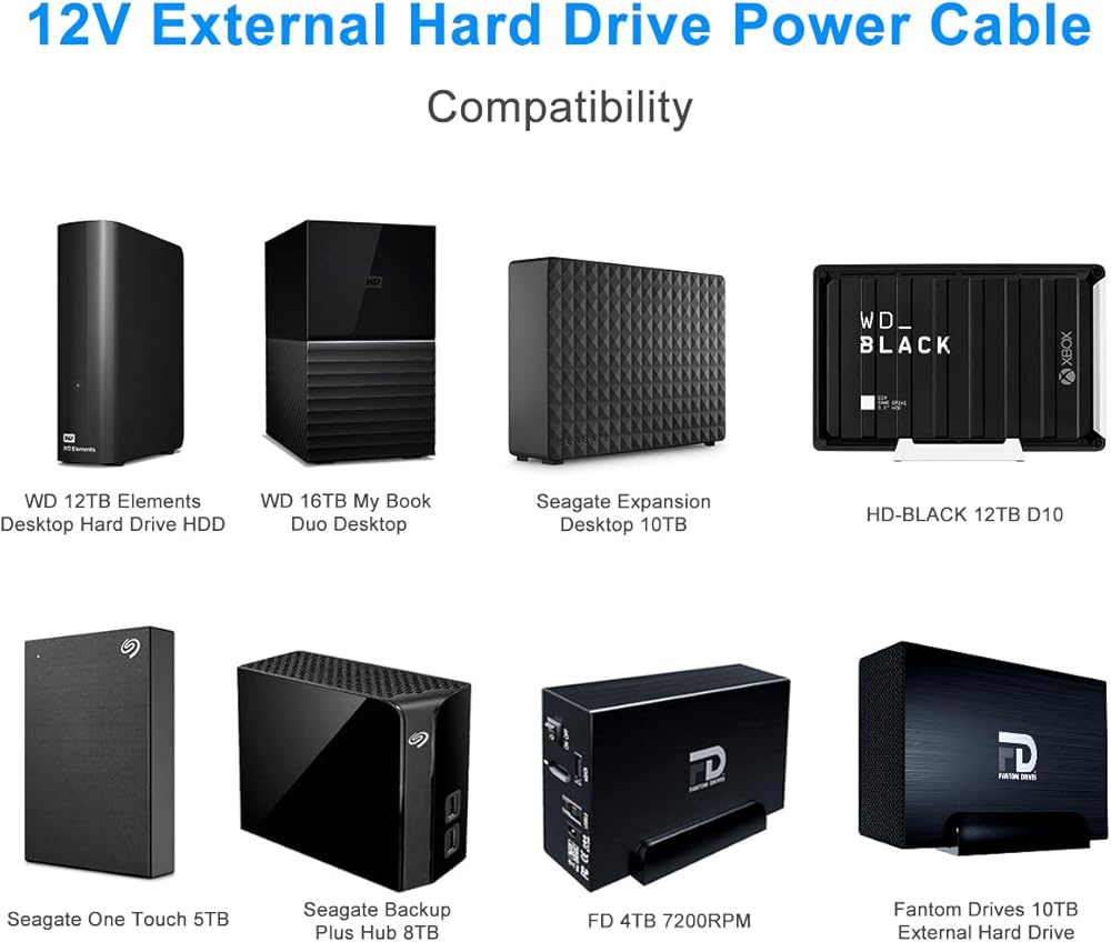 Compatibility:Western Digital Wd My Book External Hard Drive HDD WD My Cloud 1 TB 2TB 3TB 4TB 5TB 6TB, My Book AV DVR Expander, Studio, Live, Mac, Elements, Western Digital Wd Tv Live Hd Media Player, Western Digital WD TV Live Hub Media Center HD Media Player Gen 2 Generation 2, 12V External hard drive power supply.