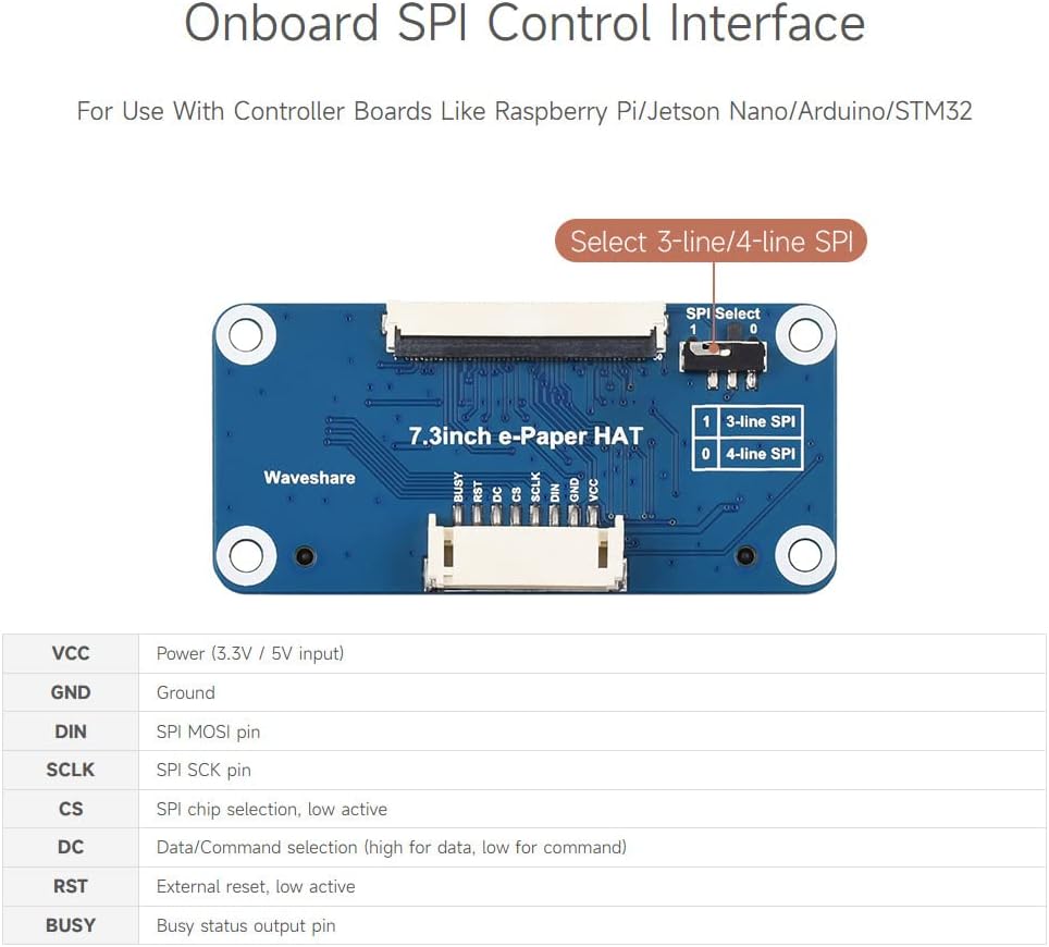 - SPI interface, for connecting with controller boards like Raspberry Pi/Jetson Nano/Arduino/STM32, etc.
