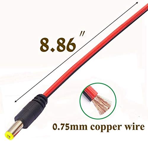 Specification: 5.5x2.1mm DC jack barrel connectors with real 18AWG wire.Length: 22.5CM ,total length :45cm (including connector).