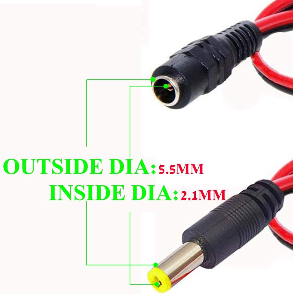 DC Power Pigtail Cable,5.5x2.1mm 18AWG Male and Female DC Connector Plug,12V 5A Barrel Jack Connector for CCTV Security Camera and Lighting Power Adapter (10 Pairs)