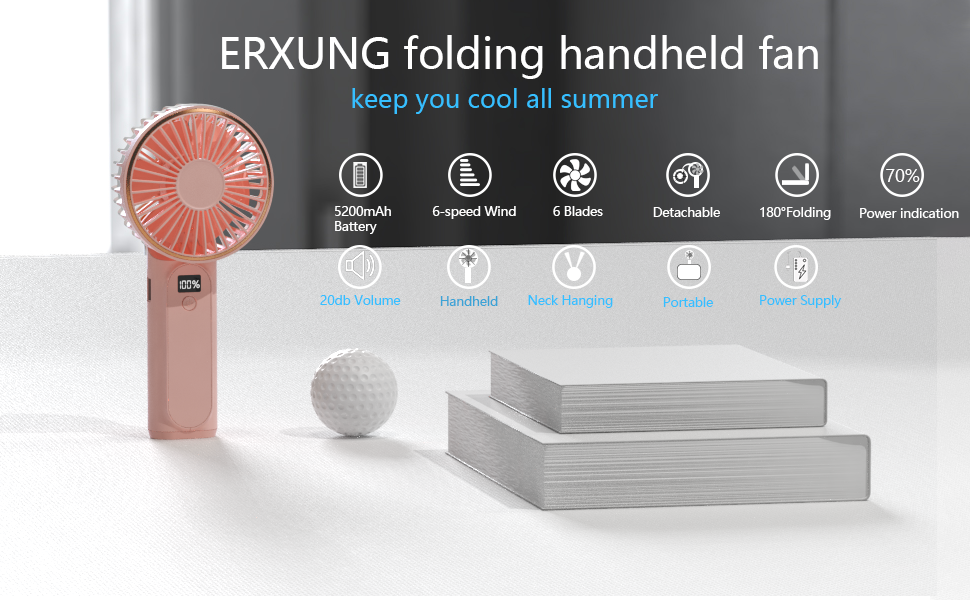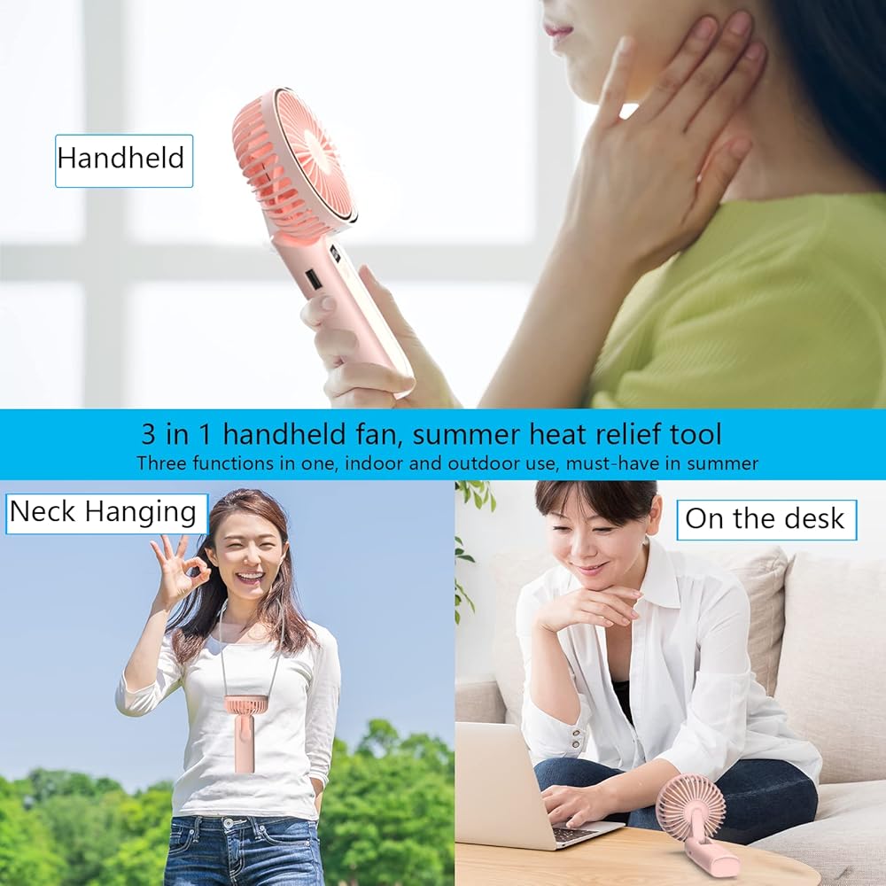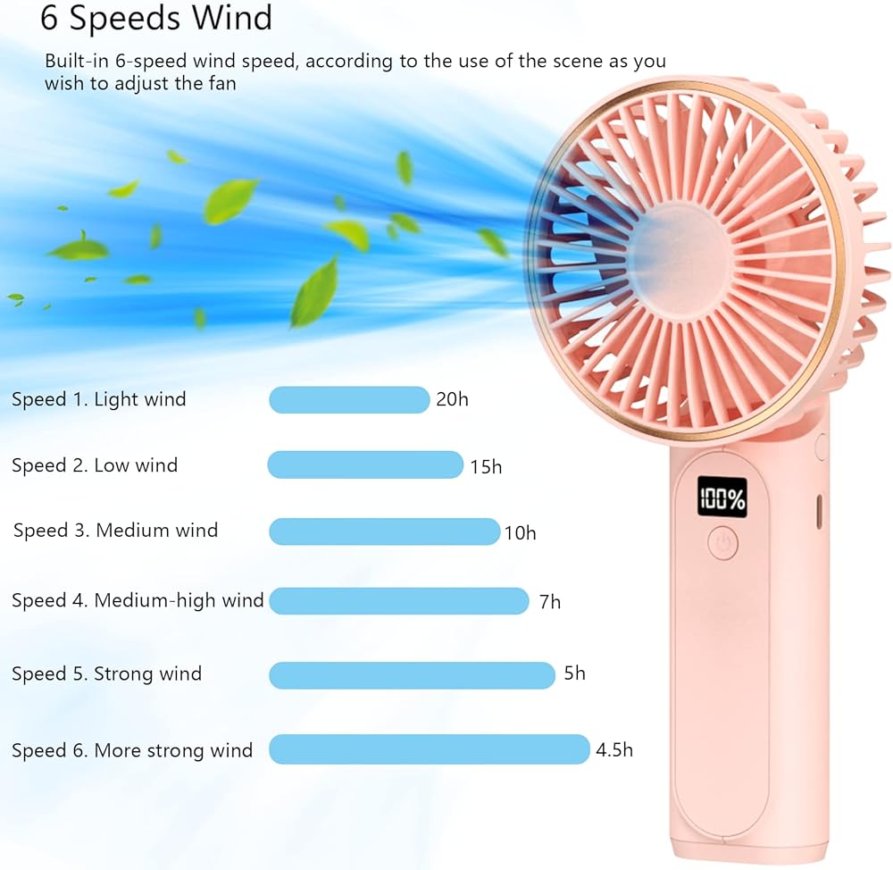 وظيفة 4 في 1 و6 سرعات قابلة للتعديل. هذه المروحة المحمولة هي مروحة متعددة الوظائف تجمع بين الحمل باليد وسطح المكتب والتعليق على الرقبة والطاقة المحمولة في جهاز واحد. مع المقبض القابل للطي، يمكن استخدامها أيضًا كمروحة لسطح المكتب، مثالية للعمل عن بعد في المكتب أو في المنزل. بالإضافة إلى ذلك، إذا كنت تستخدم الحبل، يمكنك استخدامه كمروحة مثبتة على الرقبة دون استخدام يديك، مما يجعله صغير جدًا وخفيف الوزن. مع 6 سرعات قابلة للتعديل، يمكنك تخصيص تدفق الهواء حسب رغبتك، من النسيم إلى القوي.