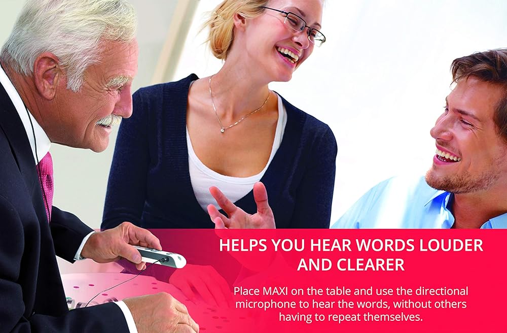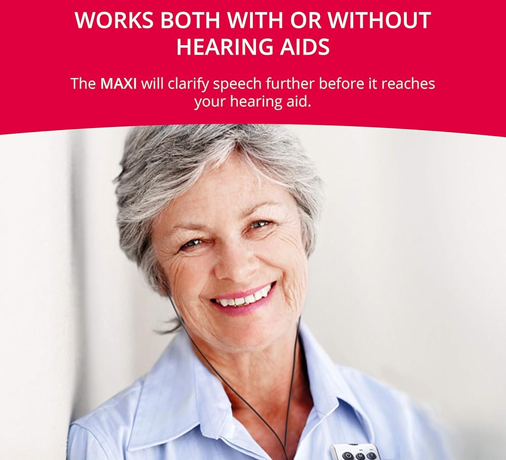 Swedish Bellman & Symfon Maxi Digital Personal Amplifier is a revolutionary communication aid that uses digital state-of-the-art technology to bring out speech and music in difficult listening situations. Maxi is developed especially for people who prefer an easy-to-use device with large tactile controls and clear indications. Maxi is intuitively user-friendly and has superior sound quality. Use it for watching and listening to the television, listening to music (stereo, MP3) or small group conversations.Maxi delivers the clear and crisp digital sound that you deserve. It fully exploits the advantages of digital technology to clarify speech and reduce annoying background noise and feedback - all to give you an outstanding sound quality. Thanks to a unique microphone suspension, Maxi's ultra-sensitive microphone is effectively protected from handling noise. This guarantees hours of comfortable and noise-free listening.Bellman Audio Maxi has been designed with simplicity and usability in mind. All common functions can be accessed using a single push on a button and there are no complicated menus to get lost in. Unparalleled ergonomics combined with high contrast coloring, large tactile buttons and soft grip materials, makes Maxi the ideal companion for hearing impaired individuals who demand flexibility, quality and ease of use.Bellman Audio Maxi can be used in a variety of applications with optional add-on accessories. The Maxi Neckloop (sold separately) connects your hands free wireless device or MP3 player with the Maxi for use with your t-coil hearing aid. For TV listening, simply attach the Maxi External TV Microphone accessory (sold separately) to your TV's speaker. With the Maxi Cable Kit accessory (sold separately), you can enjoy high quality stereo sound.The Bellman Audio Maxi comes with a two year warranty. One year warranty for the Maxi Neckloop, and 90 day warranty for all other accessories (i.e. headphone, earphone).