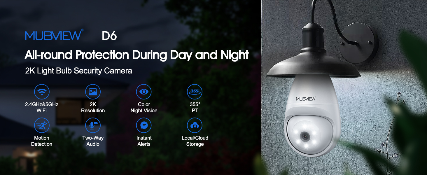 MUBVIEW Light Bulb Security Camera - 5G& 2.4GHz WiFi Security Cameras Wireless Outdoor Indoor, 2K Bulb Camera with Full-Color Night Vision, AI Human Detection, Siren, Local Cloud Storage
