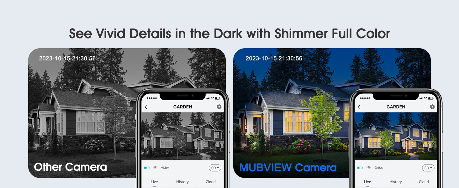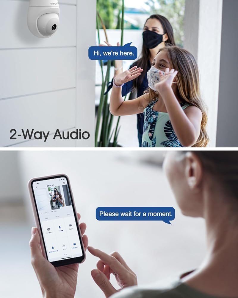 【Two-Way Audio & Premium Support】Equipped with built-in microphones and speakers, you can communicate with family and courier through the home security cameras. When uninvited guests are in your home, you can scare them away with the alarms. It's also compatible with Alexa and Google Assistant, enabling voice control of the camaras de seguridad. MUBVIEW offers a 2-year warranty, lifetime technical support and service, and responsive local customer service.