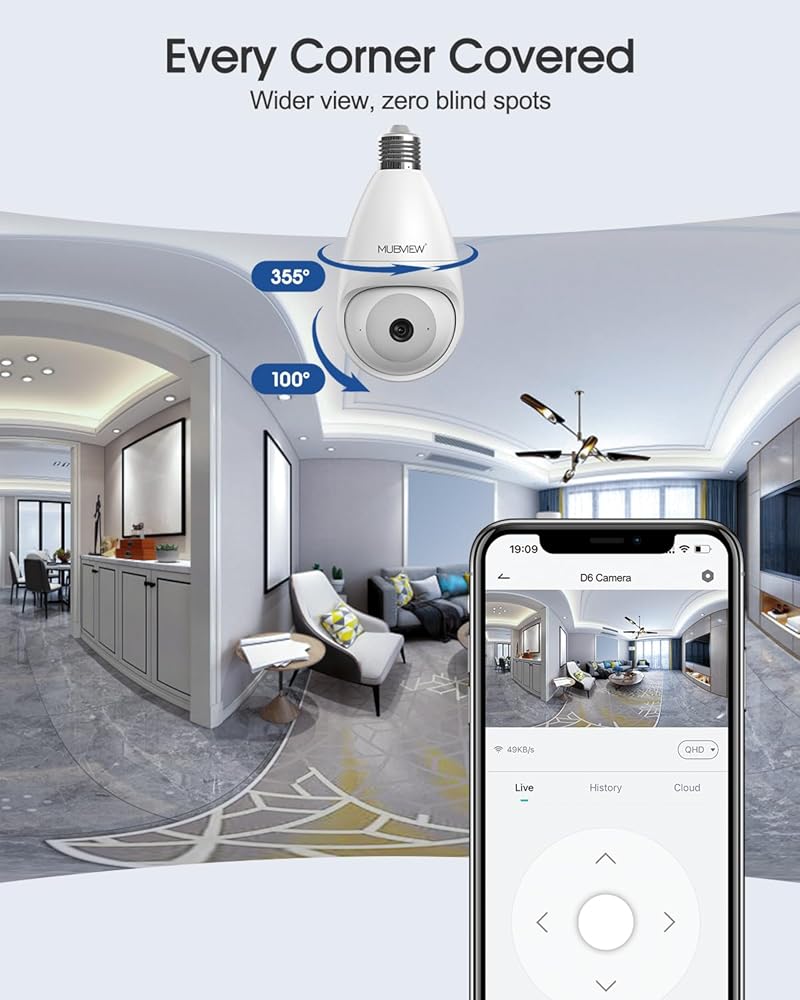 【5G& 2.4GHz Supported & Fast installation】Are you still frustrated by unreliable networks? MUBVIEW's 5G and 2.4GHz dual-band light bulb camera provides more Wi-Fi options, making the network connection smoother and never offline. Installing our MUBVIEW bulb security camera is as easy as installing a regular light bulb in a standard E27 socket (110V~240V). No wiring or drilling is required. Just follow the app prompts to set up your Wi-Fi in minutes.