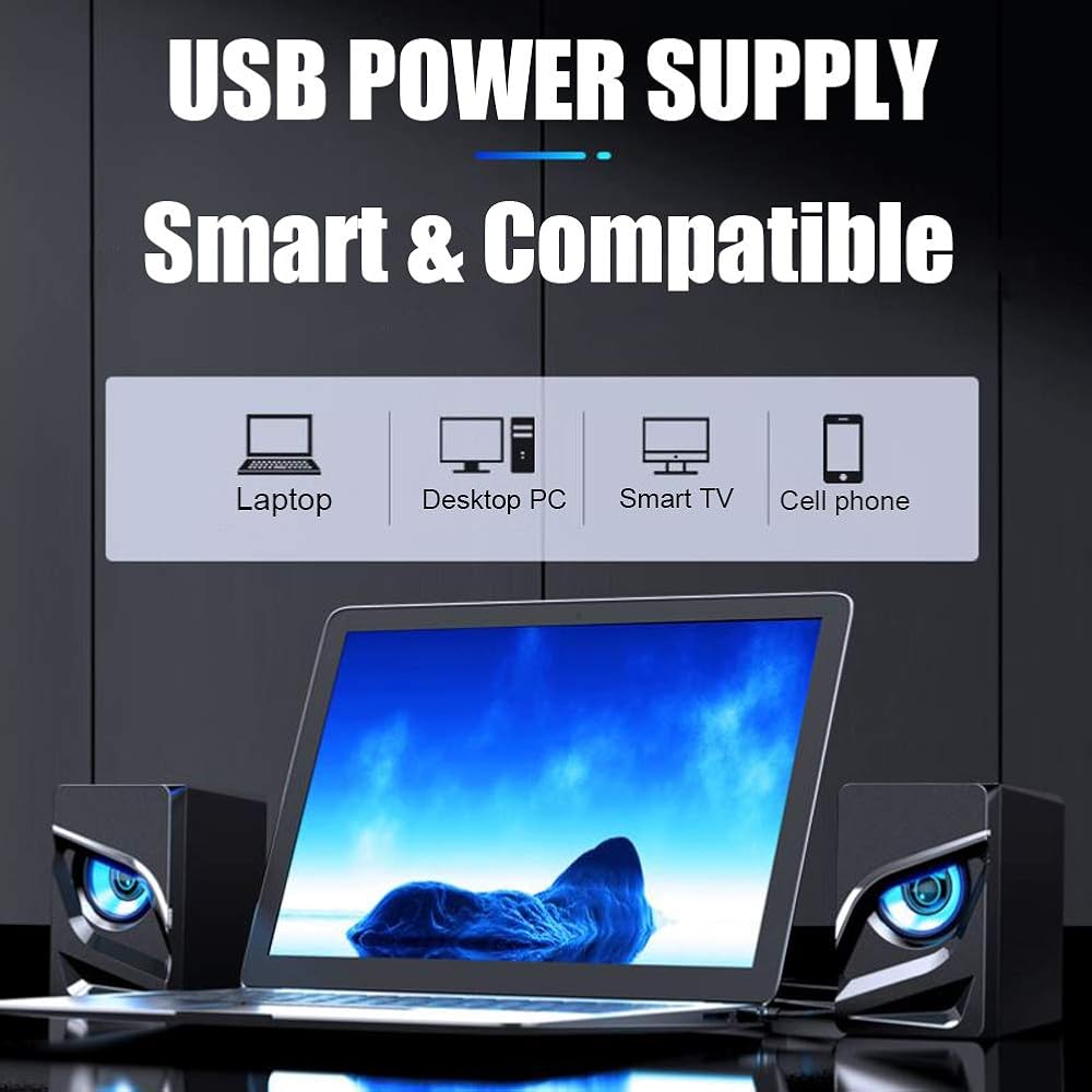 These speakers with sharp eye are compatible with any audio device with 3.5mm stereo audio, like Smartphone, MP3 Player, Androids, Desktops, and Laptops.
