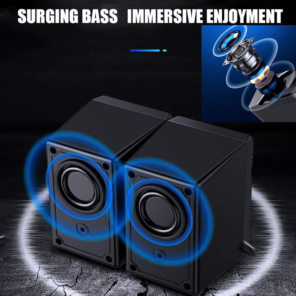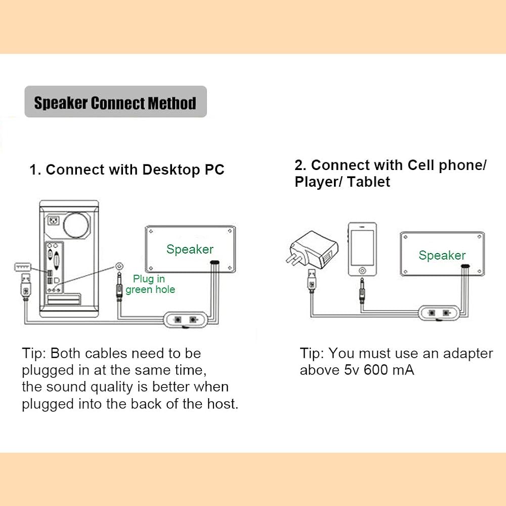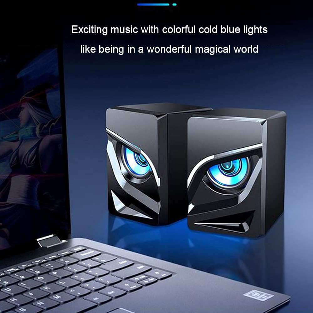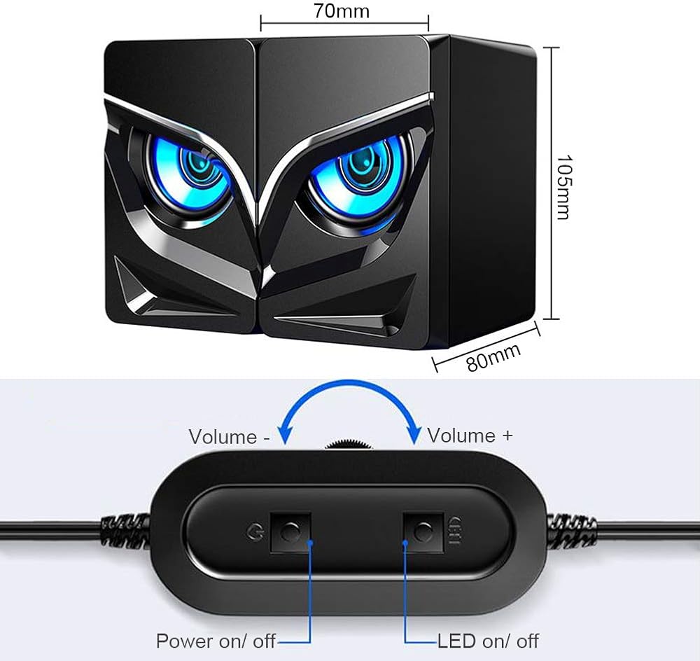 The sound effect is more clear and natural, full of beautiful sounds, loud voice, drive the mood, as if you can hear the inner germinating, embrace the good mood every day! Feature ? ? Built-in Blue Cool LED Light ? With Sharp Eye ? Shock Heavy Bass ? Mini does not occupy a space ? USB Power Supply ? Drive by wire Specification ? ? Material: ABS ? Play Format: MP3 ? Channel: 2.0 stereo ? Speaker: 2 ? Power: 3W ? Input Voltage: 5V ? Interface Type: USB ? Weight: 430g ? Dimension: 70x80x105mm*2 ? Headphone connectivity: 3.5mm ? Operation Mode: connect with phone, computer, or player What in the Box ? ? 2 Speaker with control wire ? 1 set Instruction