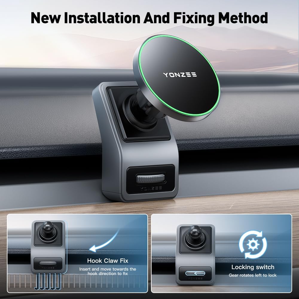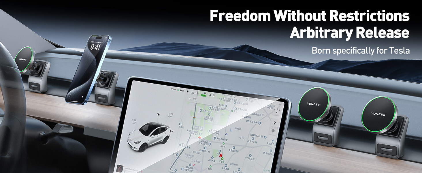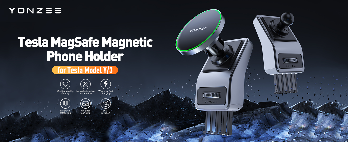 YONZEE Strong Magnetic Phone Holder for Tesla Model Y/3 Fits MagSafe Car Phone Mount, HandsFree Car Accessories Cell Phone Holder Dashboard Vent Car Mount Fit for All Phone Tesla Model Y/3 Accessories