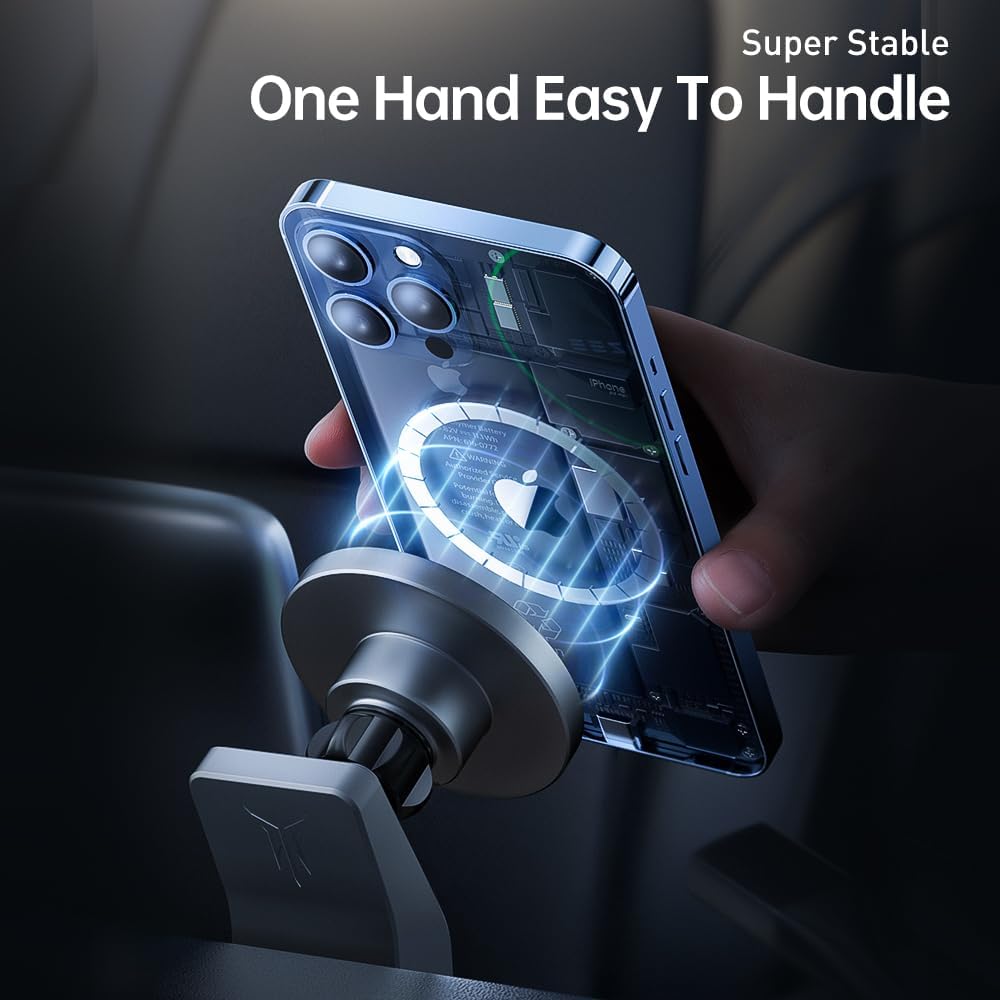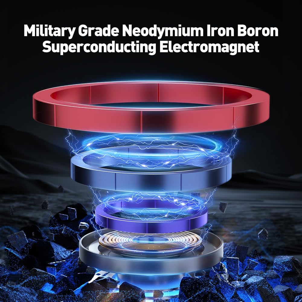 The Tesla magnetic phone holder fit MagSafe has N50 super strong magnetic attraction, superconducting electromagnets, which firmly adsorb the phone and prevent it from falling. Built in smart chip for low temperature wireless fast charging, not hot and no harm the phone. In addition, the phone holder also comes with LED breathing ambient lights, allowing you to see at night.