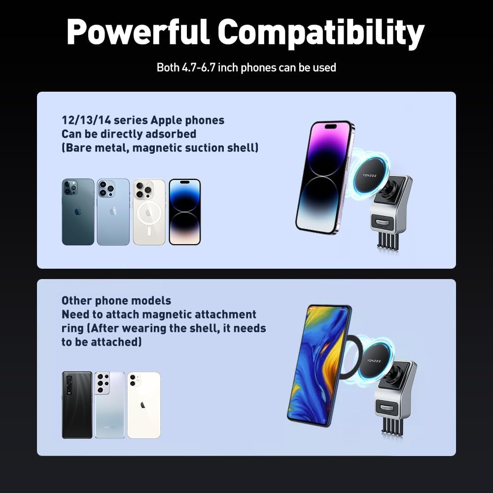 Considering some phones and cases without MagSafe function, we provide extra 2 magnetic adhesive sticker as gifts. Once pasted, your phone/case can have the fit MagSafe function. Our Tesla phone holder is compatible with all phones and cases.