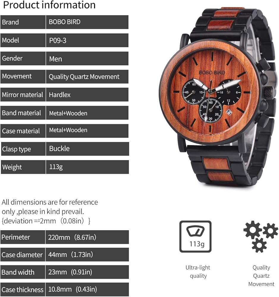 Adjustable Band:Packing with 1 Links Removing Tools,you can easy to remove the watch band links size to fit your wrist.Carefully Packaged with Watch Box