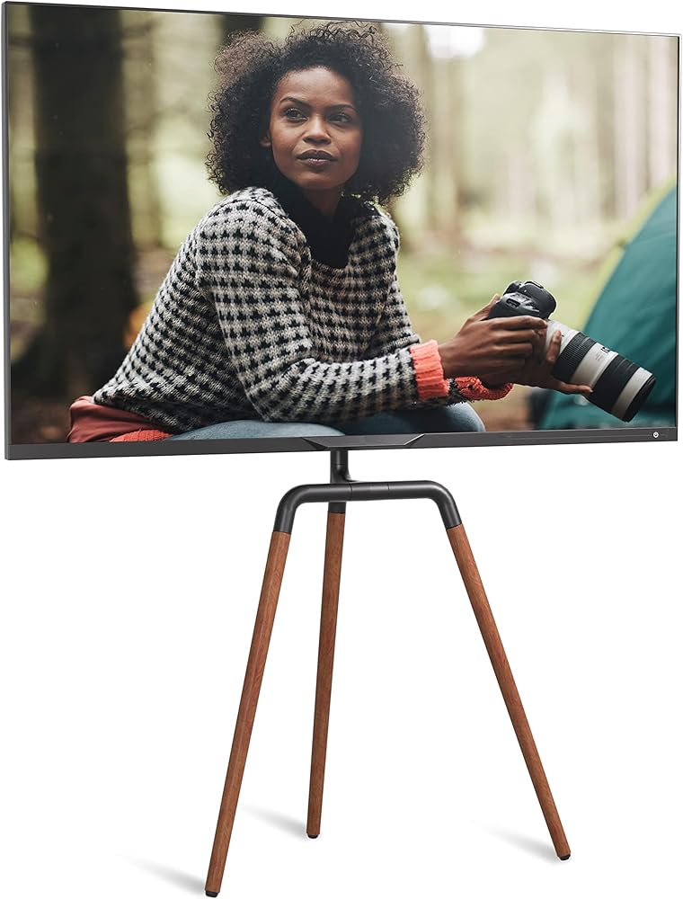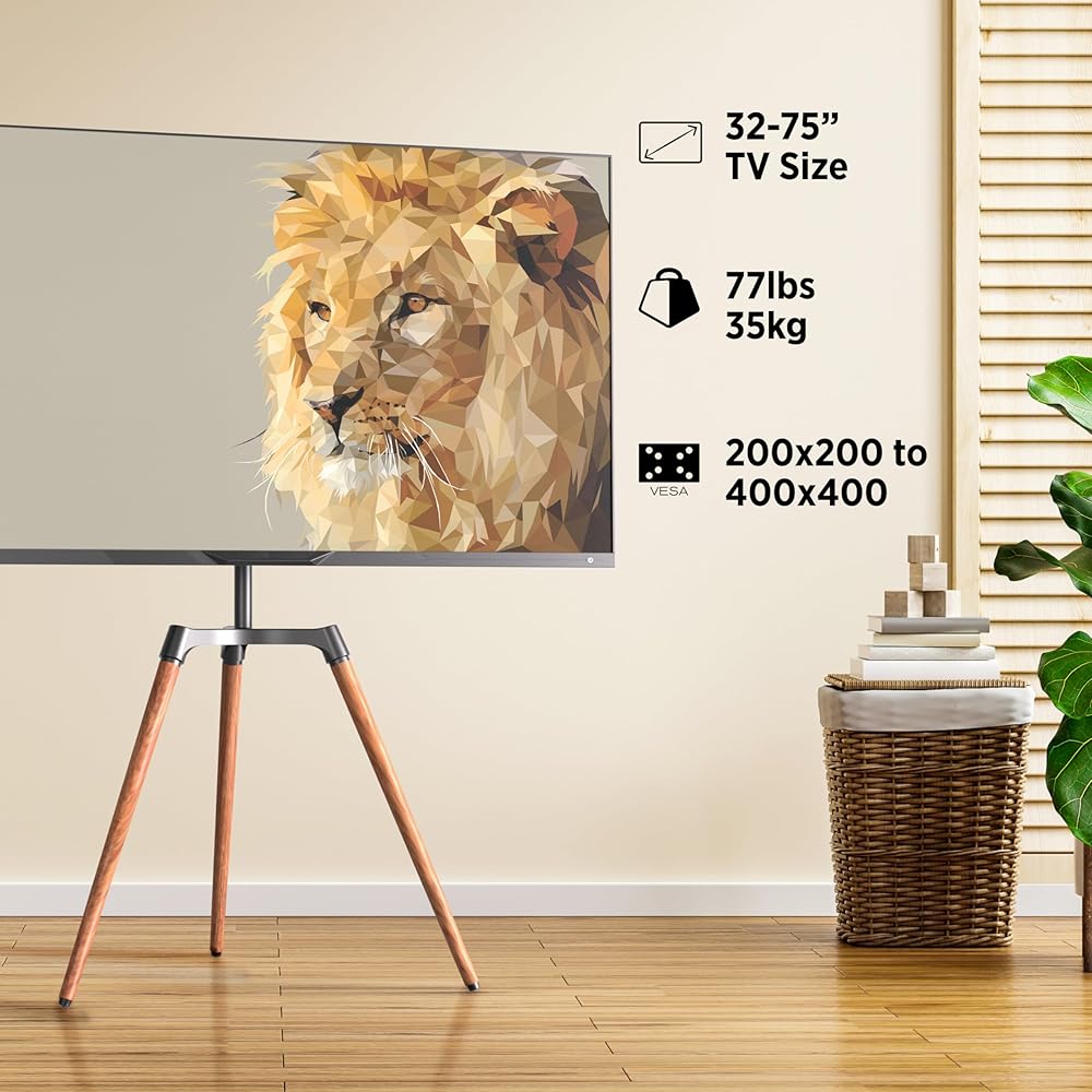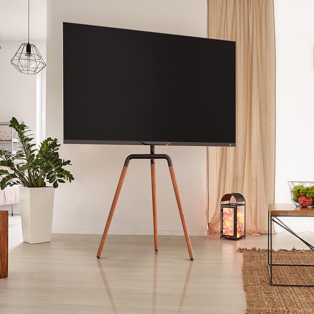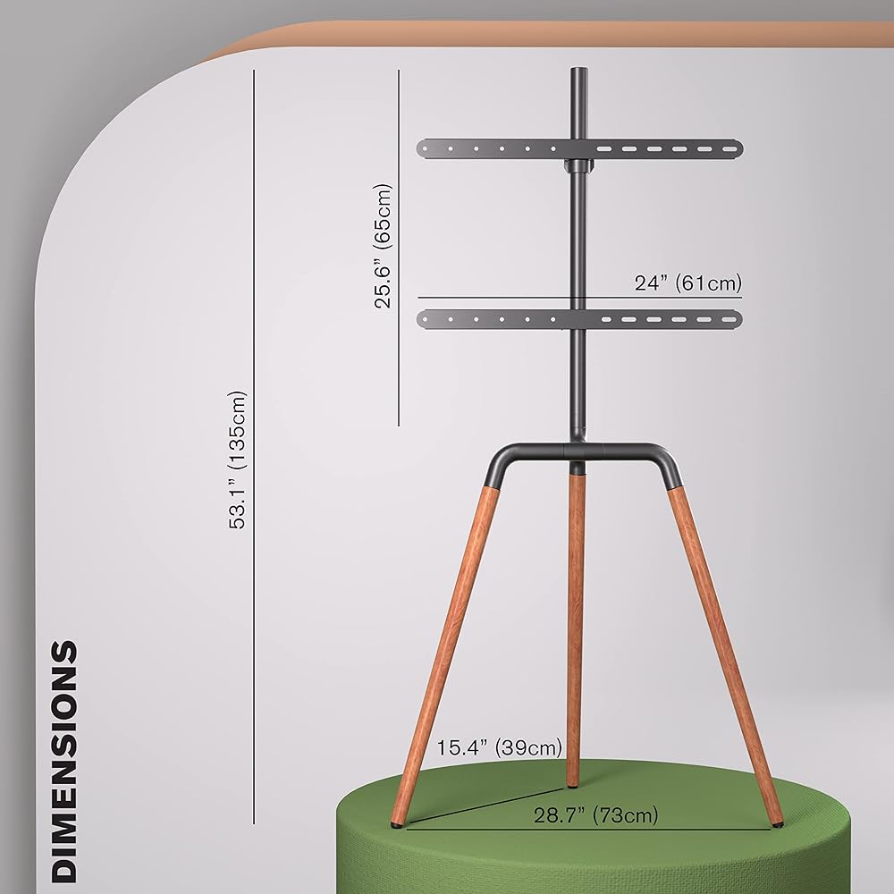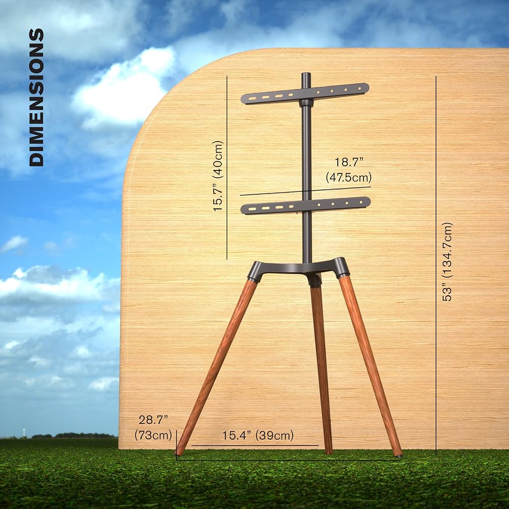 ✅STREAMLINED CABLE THREADING SYSTEM: Built-in Integrated cable management on this tv easel, allows for easy cable threading and keeps cords out of the way and out of view. This function also ensures that your cables will remain in pristine condition, which will keep the picture quality sharp and provide a pleasurable viewing experience using our tripod mount