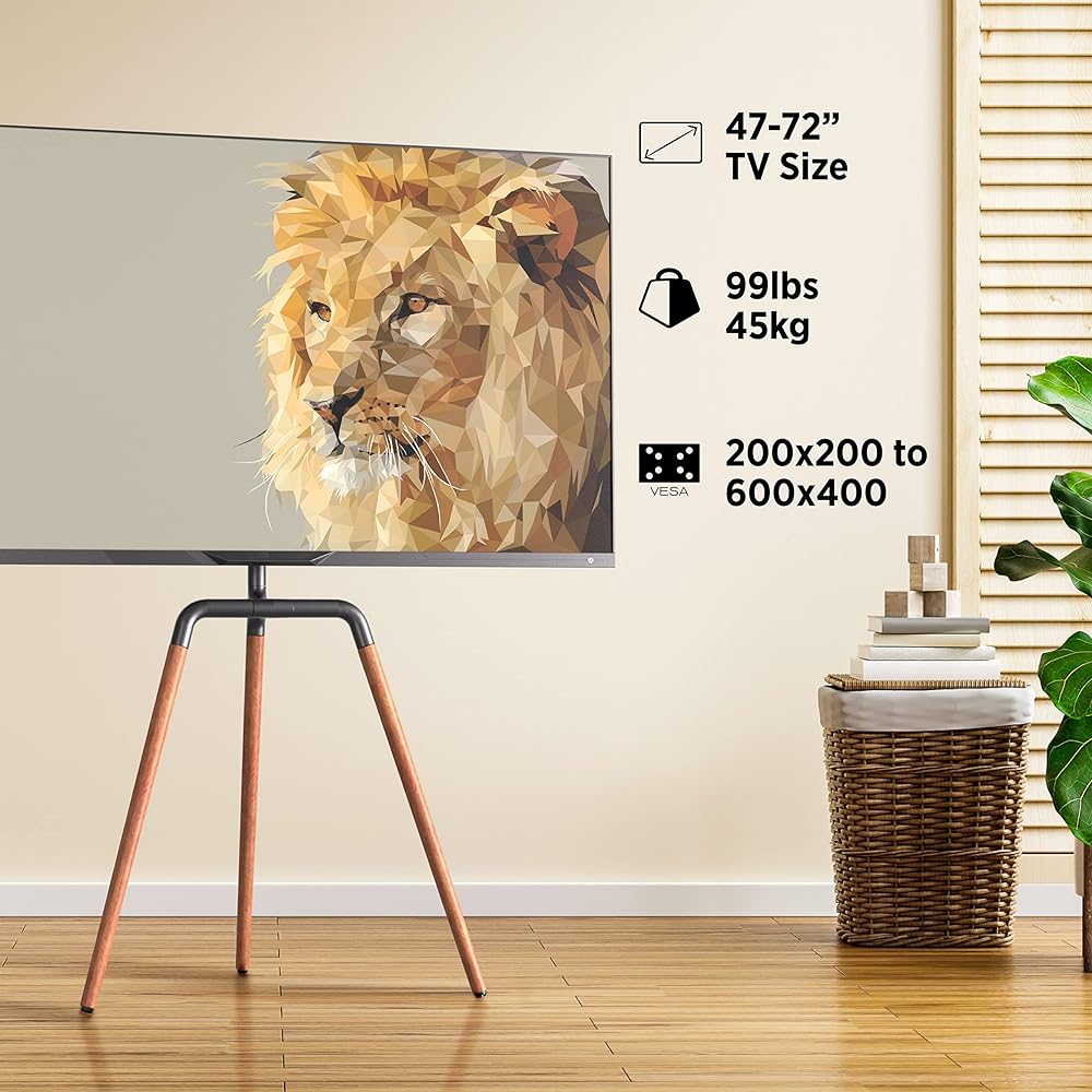 ProMounts Modern TV Floor Stand, Universal TV Mount with 90° Swivel, Corner TV Easel with Tripod Base for 47-72 Inches, TV Stand Mount for LED LCD OLED Flat and Curved Screens, Holds up to 99lbs.