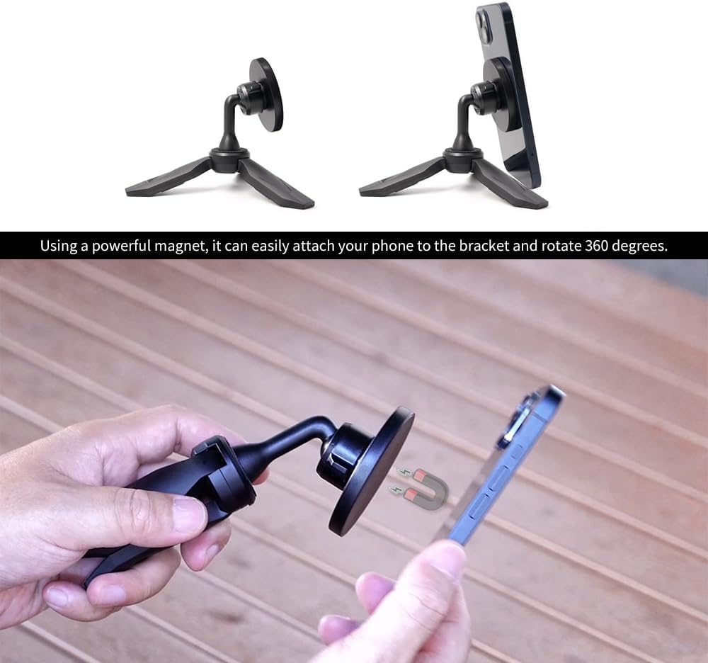 Using a powerful magnet, it can easily attach your phone to the bracket and rotate 360 degrees.
