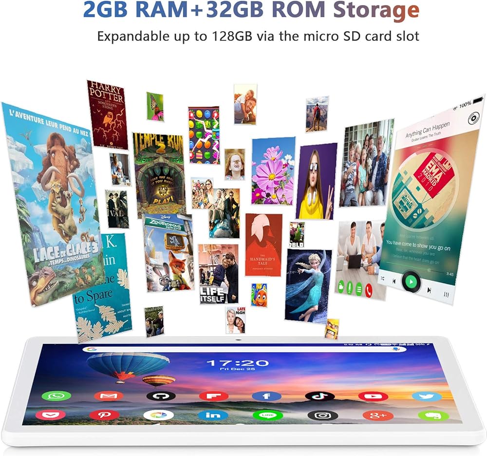 【تخزين مذهل】---- يتميز بسعة تخزين داخلية 32 جيجابايت، (MicroSD قابلة للتوسيع إلى 128 جيجابايت)، وهو مثالي لتشغيل مجموعة كبيرة من تطبيقات الترفيه بطلاقة، مثل Youtube وInstagram وSkype وما إلى ذلك.