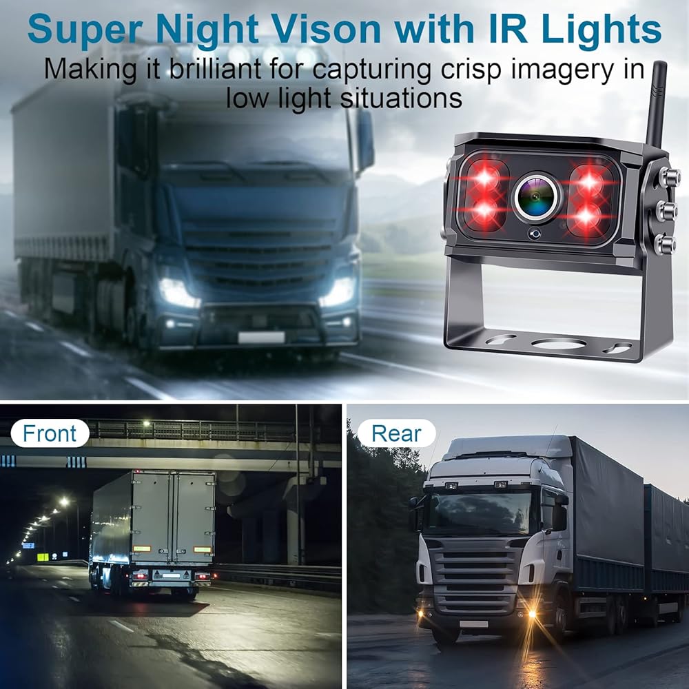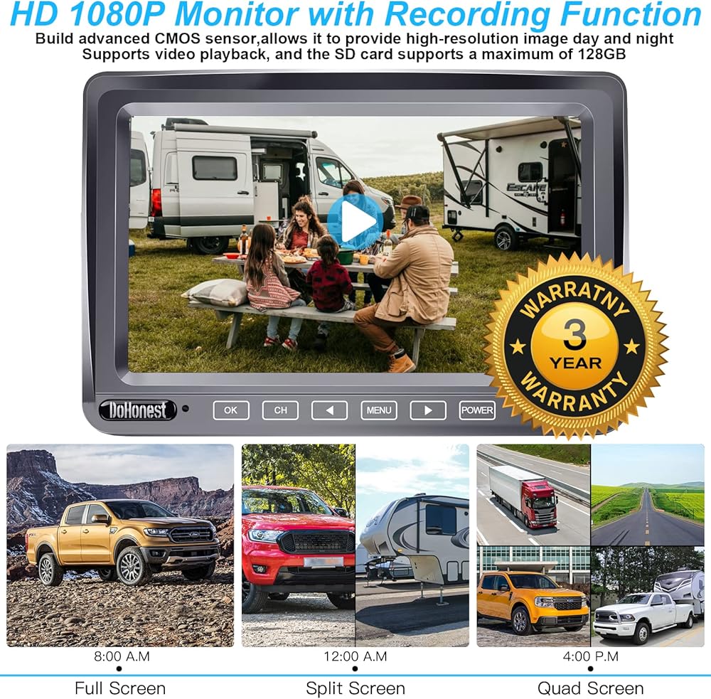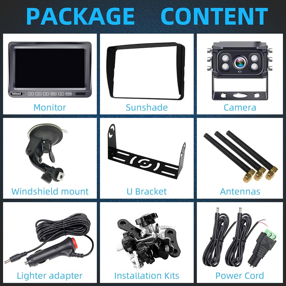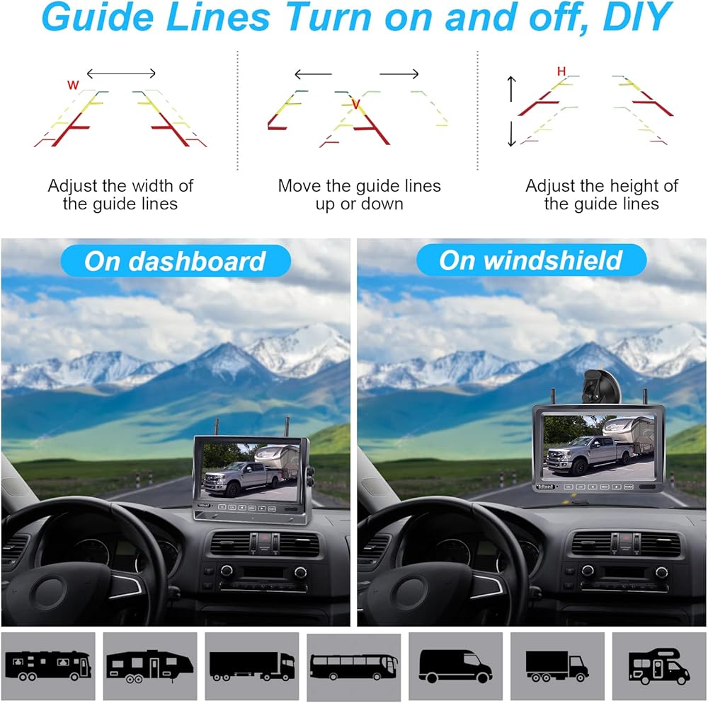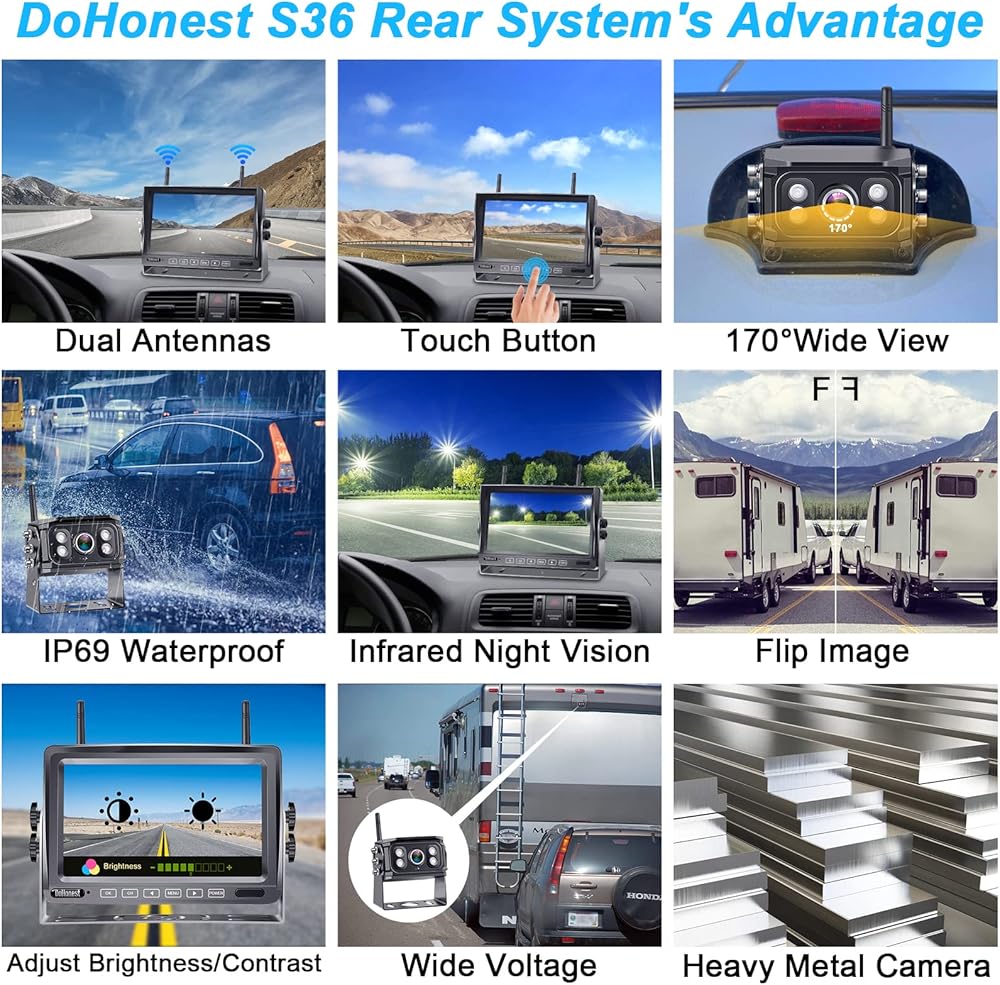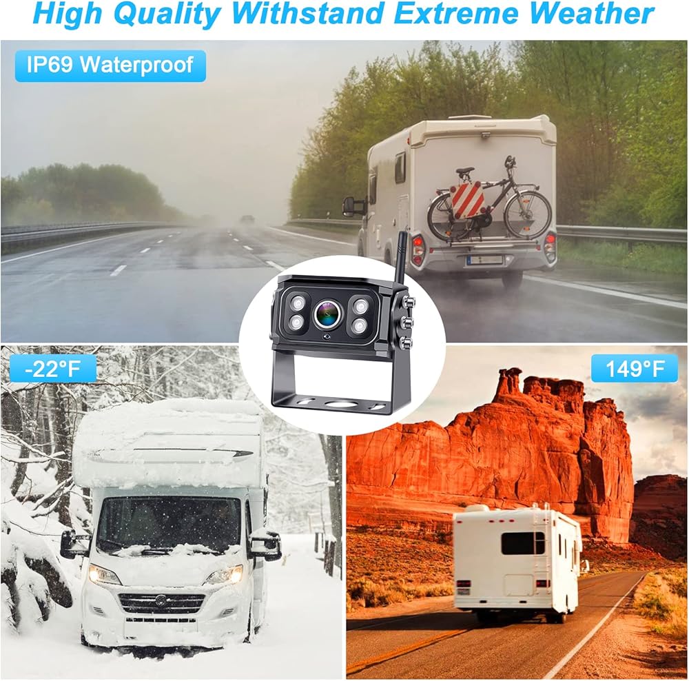 ★ Multi-Functional System - The rv camera system wireless supports reversing assistance, driving monitoring, and DVR functionality to record videos of your trip. The display can adjust brightness, contrast, and more for customizable viewing.