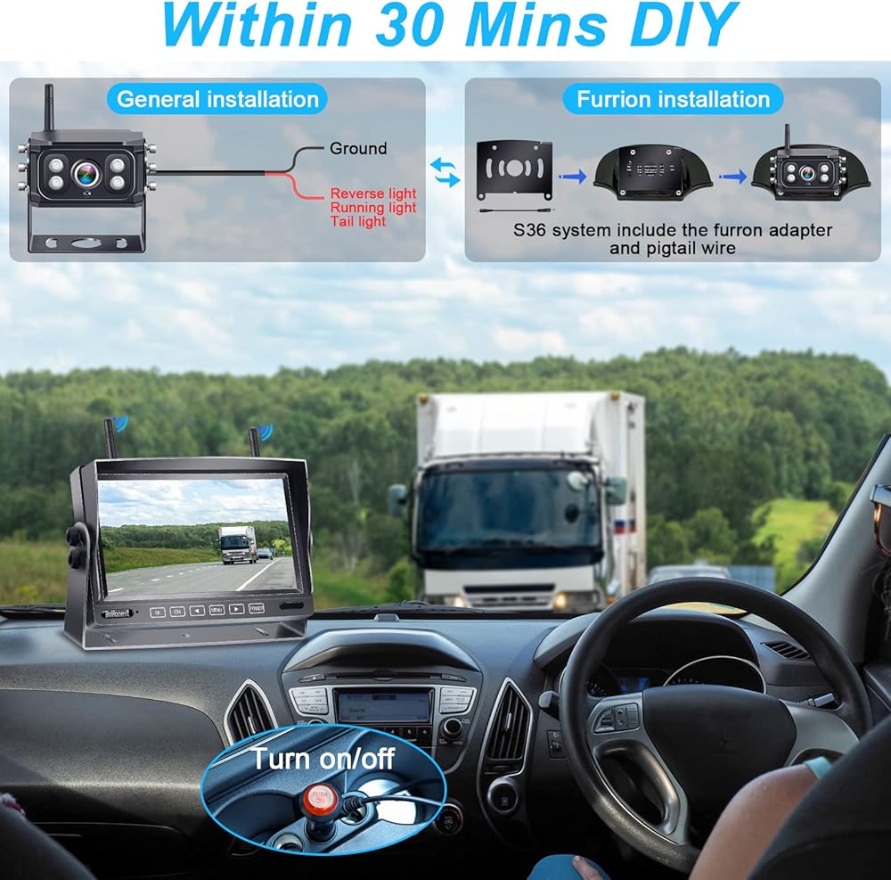 ★ 10-Minute Installation - The S36 touch key monitor and rv backup camera each receive a 12V power supply for safe operation, and the system is compatible with the Furrion pre-wiring system. Installation is quick and easy.