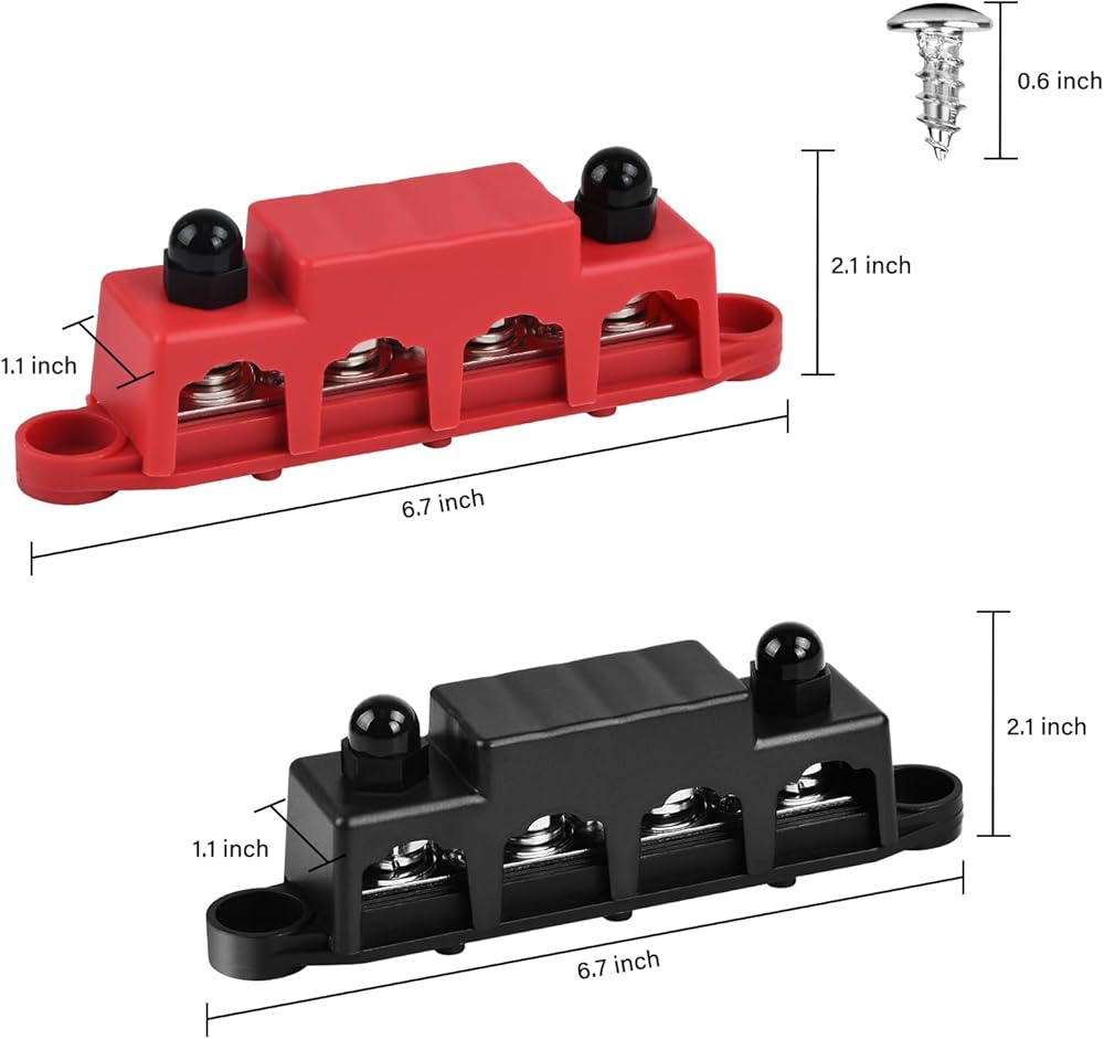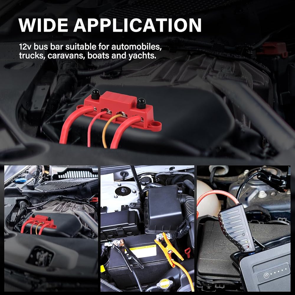 Widely Use: you can use this pair of black and red battery bus bar, to manageing the wire and wiring, can keep the circuit neat and orderly, avoid the short circuits. Suitable for cars, trucks, caravans, ships and yachts, etc.