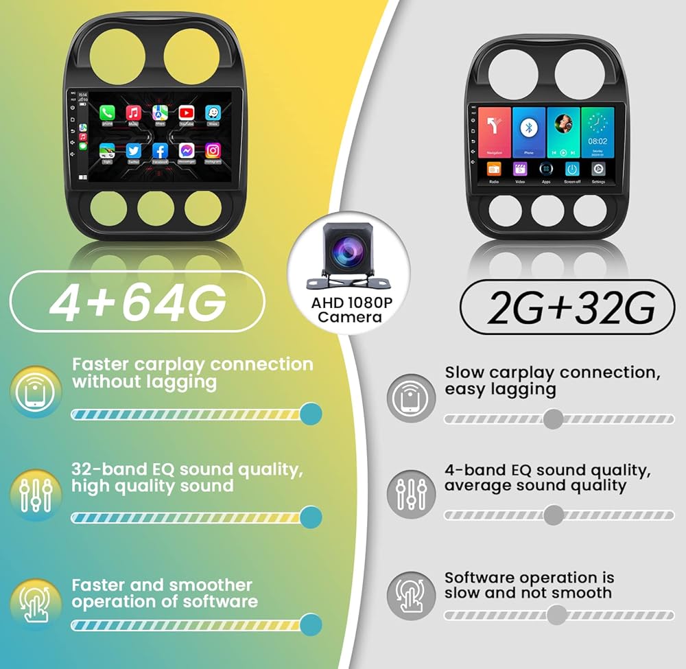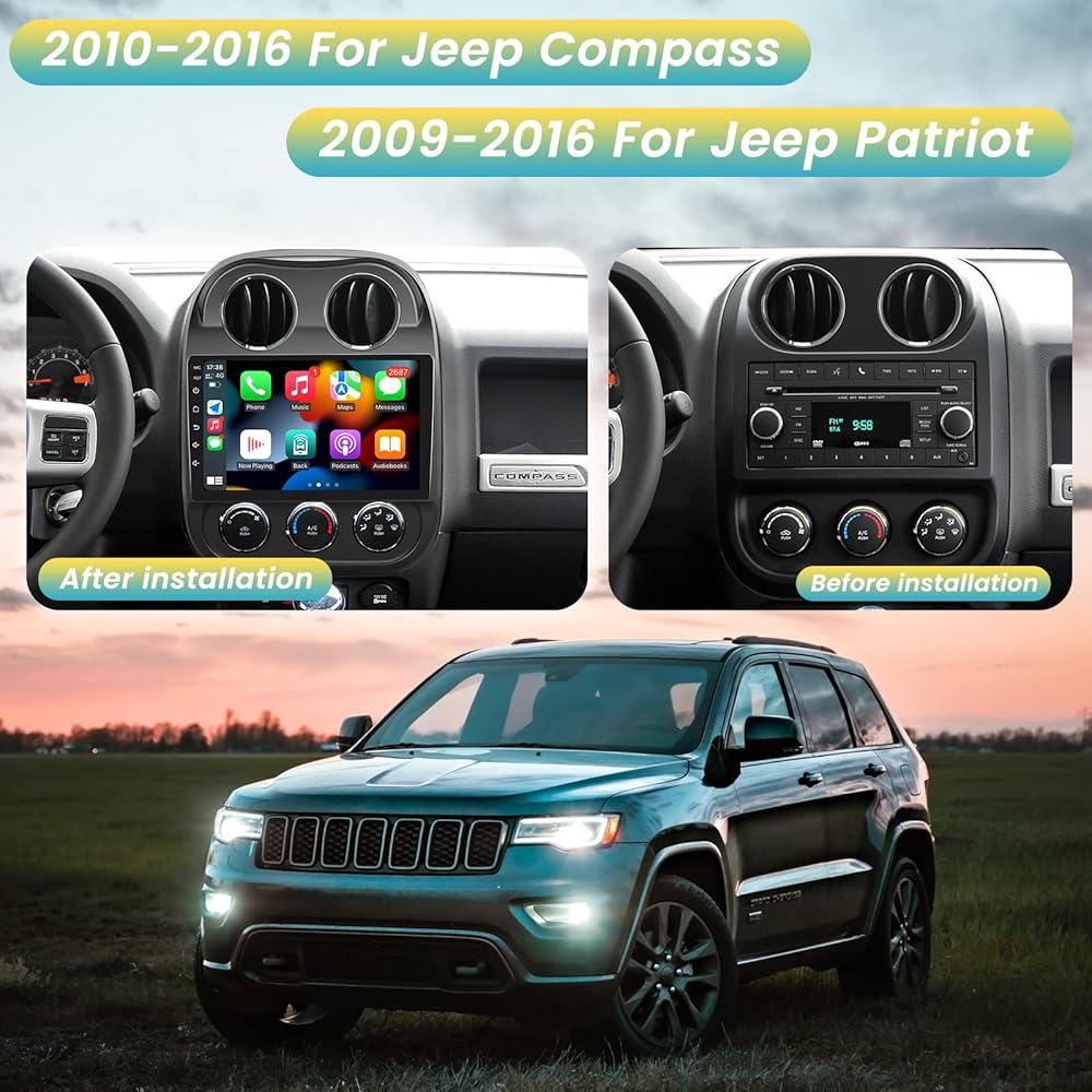 【Applicable Car Models】Compatible for Jeep Compass 2010-2016.Compatible for Jeep Patriot 2009-2016.Please send us your car's model, produce year and a car dashboard picture by Amazon chat, we will help you to check if this car stereo is suitable for your car and equip all the cables for you.