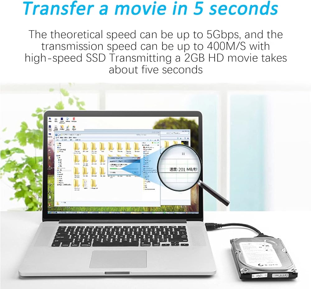 【Fast Access】: Using this USB SATA II Adapter 2.5, you can connect any standard 2.5-inch Hard Disk Drive to your computer or laptop at speeds up to 5 Gbps through SATA port. (SATA II transfer rate is up to 3Gbps,SATA 1 is up to 1.5Gbps). When use this interface of USB 3.0, the read speed is up to 300MB/s. It is 10 times faster than USB 2.0. Moreover, you can upgrade your laptop via add drive space.