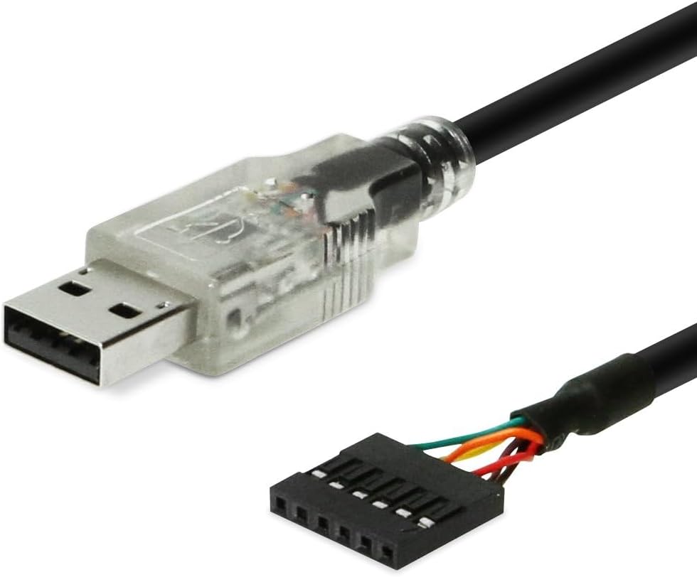 The Cable provides a USB to TTL Serial interface to 6-pin header.