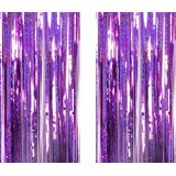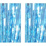 Metallic Foil Fringe Shimmer Curtains - Pack of 2. Colorful and high grade, size 3.2ft x 8.2 ft x 2 pack. Metallic Laser shimmer curtain: made of tinsel, shiny, good as party decorations. Glittering backdrops: suit to cover doorways or walls of to act as backdrop for DIY photo booths; Create party atmosphere for Christmas, birthday party, wedding party, ceremony, stage background, disco, baby shower, bridal show, etc. Foil curtains are shiny decoration, great for creating a party atmosphere in venues with high ceilings, bring fun and surprise.