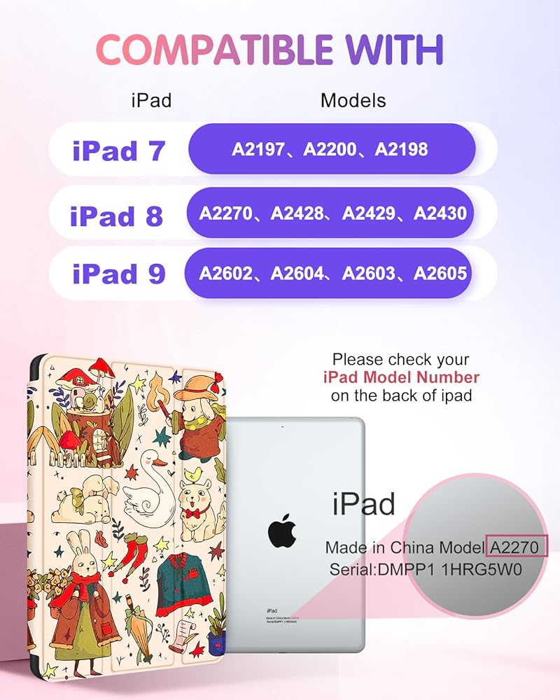 Unique Design: This for ipad 9 case, for ipad 8 case, for ipad 7 case has multiple stylish designs, makes your iPad look more vivid and adurable, it is also a good gift for family and friends.