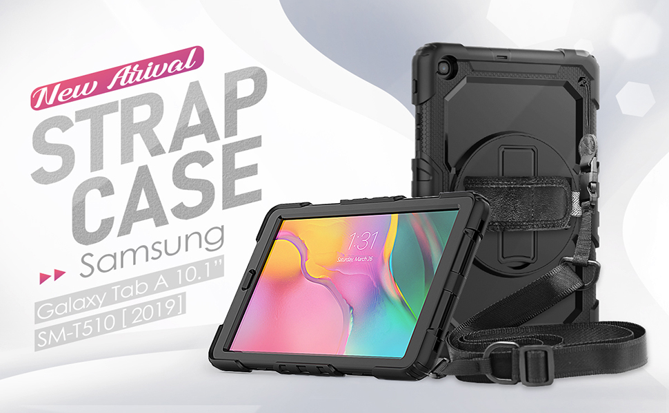 【Built-in 360 Rotatable Kickstand & Hand Strap】360-degree rotating swivel stand supports position of 3 angles(Vertical, Horizontal, and Halfway between), ideal for watching videos, conferences and travelling. Soft rotating handle strap prevents falling of samsung 10.1 tablet, featuring convenient use for teachers, students, waiters, doctors, nurses and conference presenters.