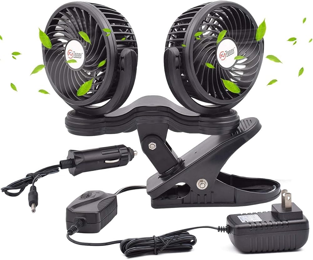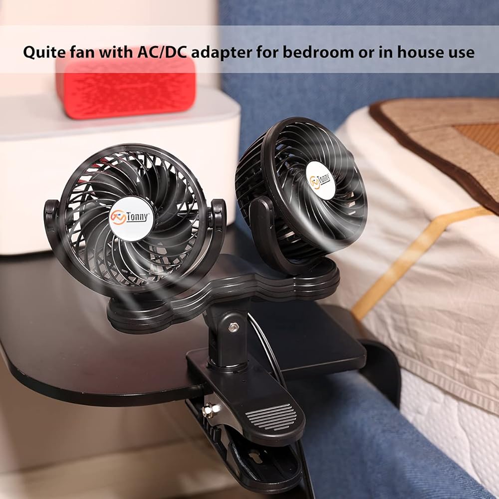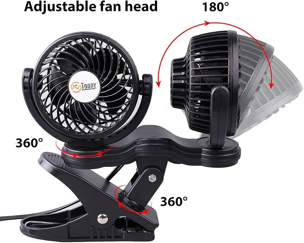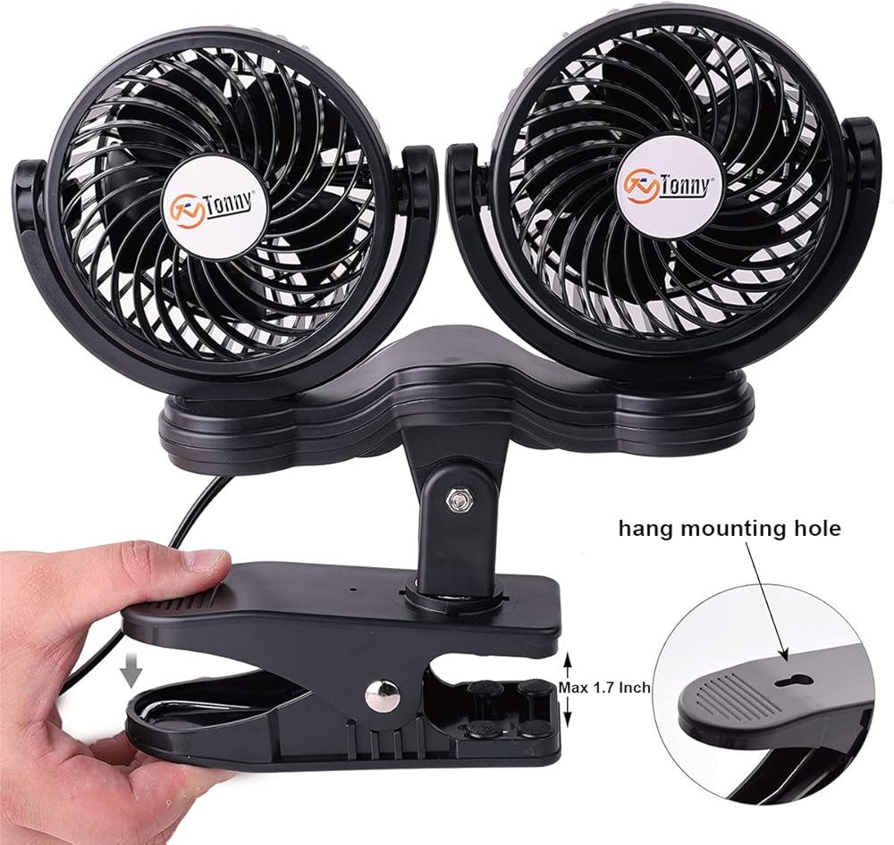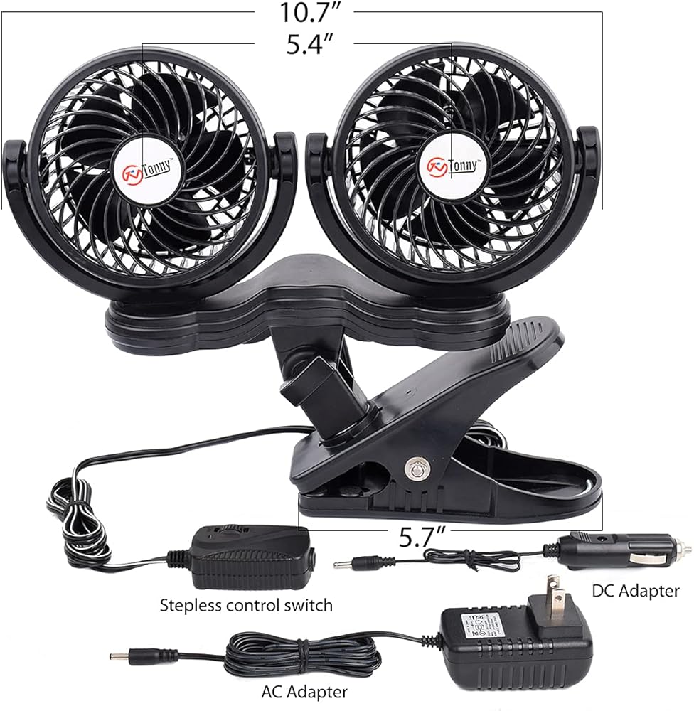 【FLEXIBLE OPERATING】 - This multi application AC 110 volt and DC 12 volt fan is very simple to use, 360 degree rotating strong clamp mounted anywhere you want, just plug the adapter in your car or in AC power outlet , then turn on the switch, it bring cooling for you