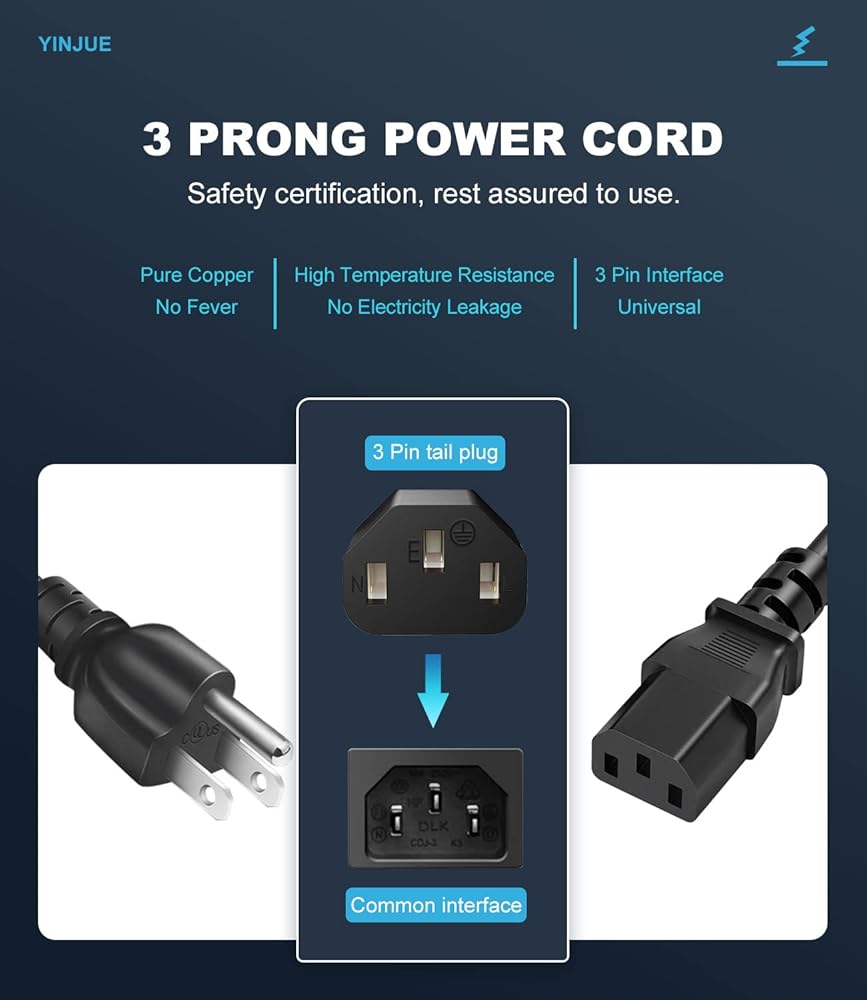 [Compatible Models]: High quality pure copper 3 prong AC power cord work with your TV computer PC monitor printer or other devices with a 3 pin power connection.( Please check that your device's connection port matches before purchasing)
