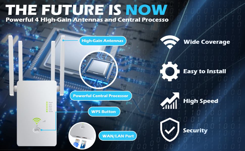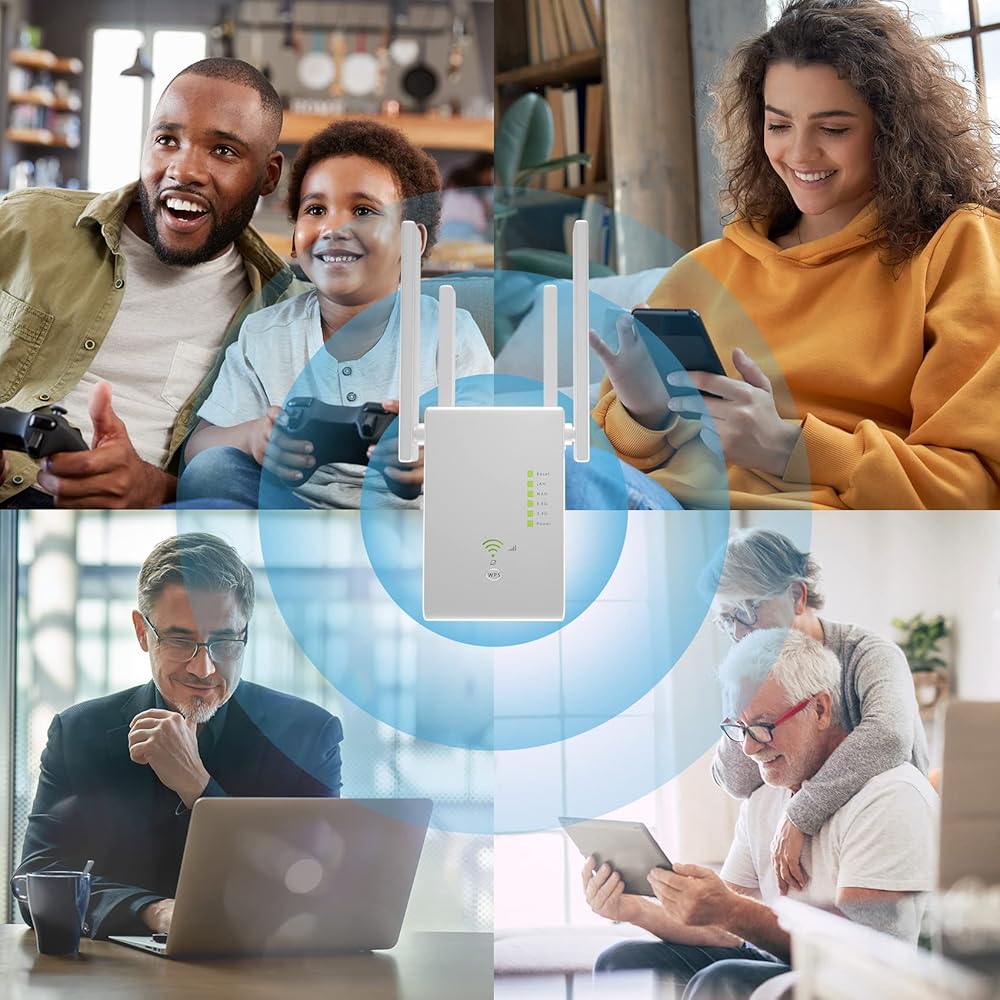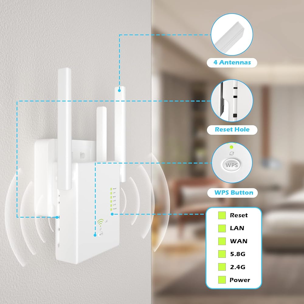 WIFI SIGNAL BOOSTER WITH HIGH SPEED 1200Mbps : Wifi range extender with 4x3DBI OMNI Directional Antennas . Latest Wifi booster support dual band 2.4G/5.8G can provide a total rate of about 1200Mbps, Which maximizing reduces the loss of data transmission and enjoying HD video/game and fast speeds internet mode.