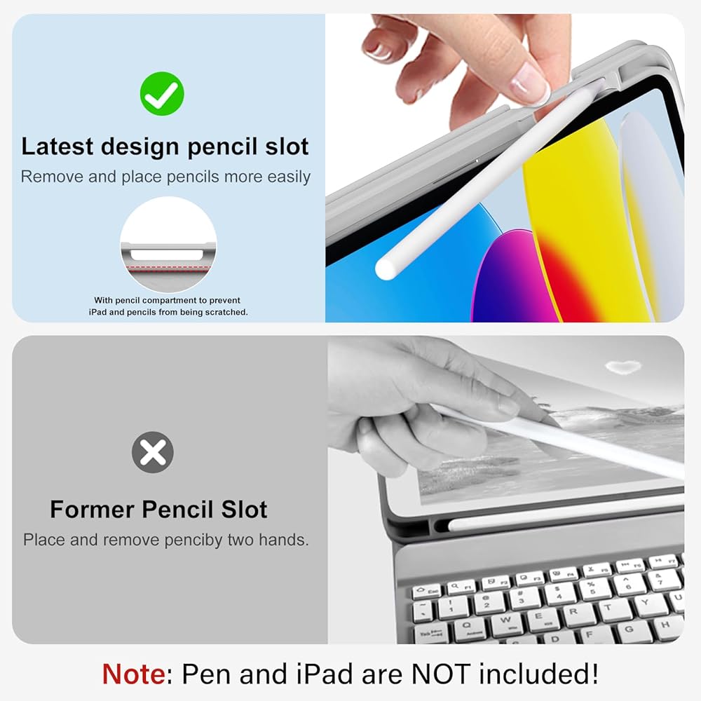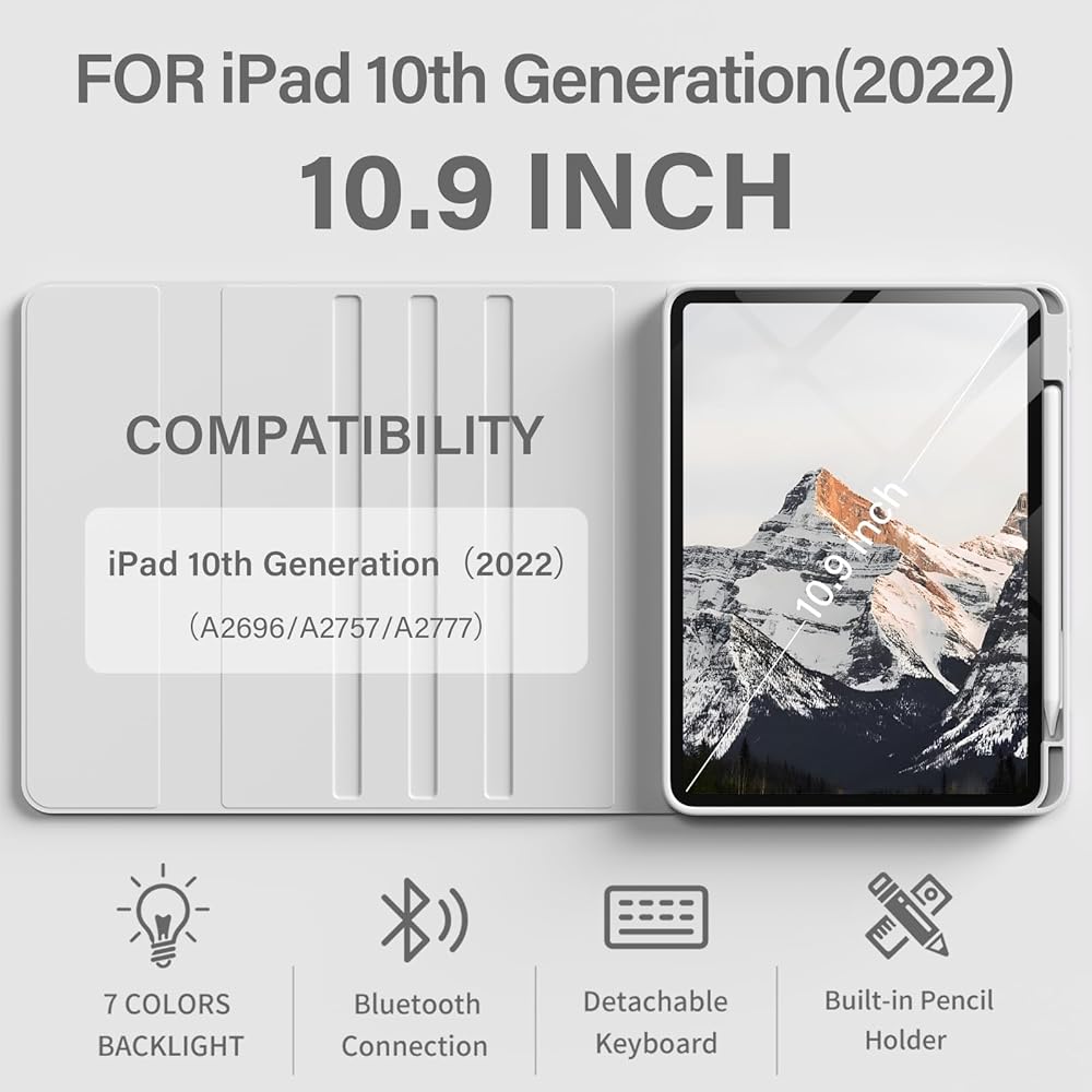 【Compatibility iPad 10.9 inch Case with Keyboard】 iPad keyboard case is designed for iPad 10th Generation 2022 10.9 inch(Model:A2696/A2757/A2777). It is Not compatible with any other devices. Please check back bottom of your iPad to find the model number.