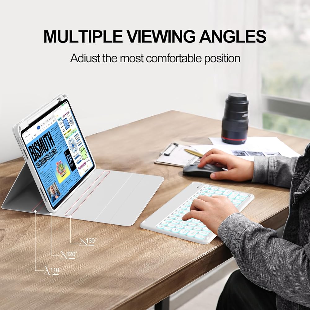 【Auto Sleep/Wake & Full Body Protection】It automatically wakes or puts your iPad to sleep when it is opened or closed,save much power for your iPad. Precise cutouts allow full access to all features and offer the perfect protection, convenience for daily use. Keyboard case comes with honeycomb grid pattern design is better for heat release and anti-skid.Solid keyboard case give comprehensive protection for your ipad 10.9 case with keyboard from scratches and damage.